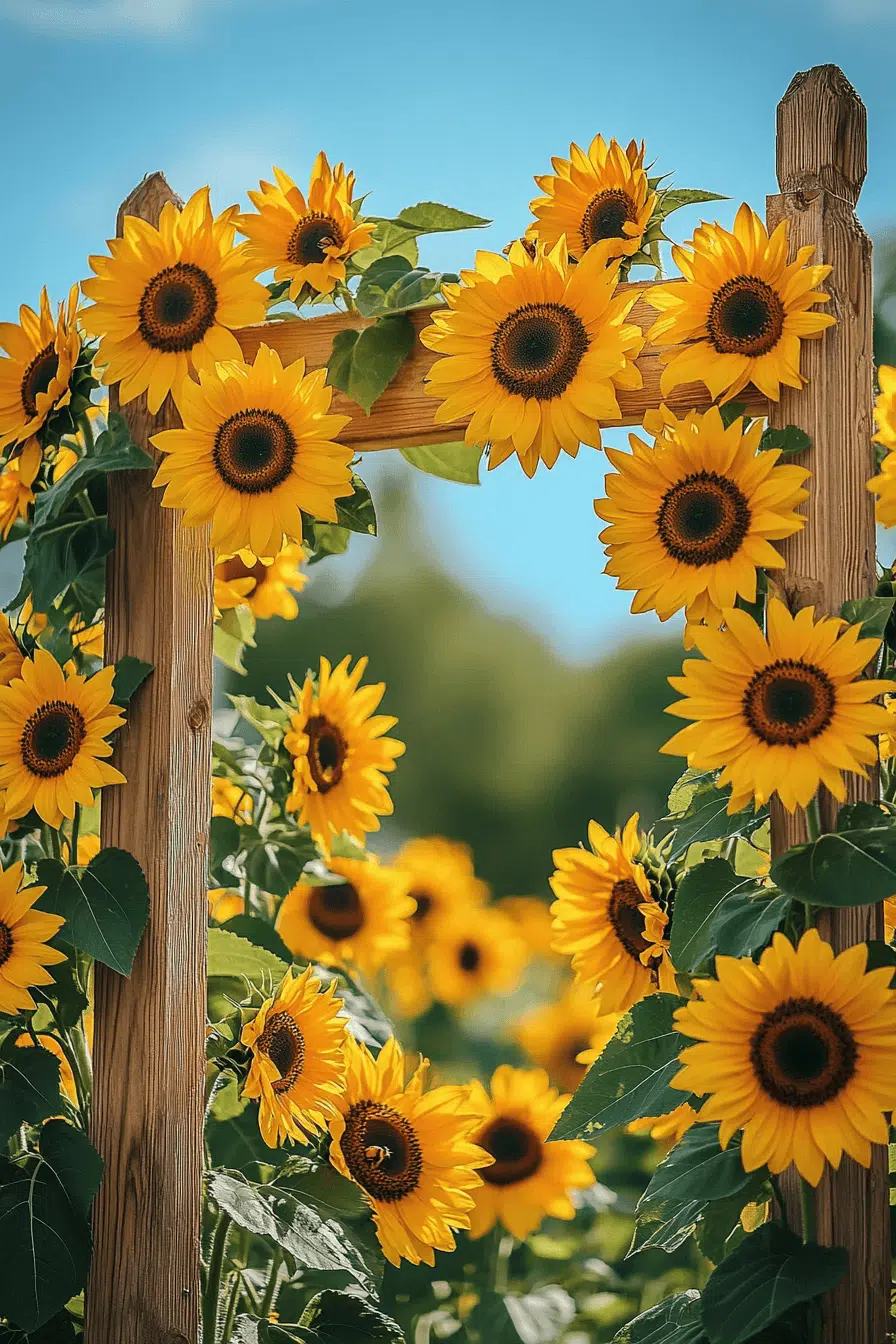 Bold and cheerful, garden arbor ideas with sunflowers instantly brighten any outdoor space. Vibrant blooms create a lively and welcoming entrance. Their golden tones add warmth and energy throughout the garden. This style works beautifully as a seasonal highlight. The atmosphere feels uplifting and vibrant. Explore garden arbor ideas that radiate happiness.