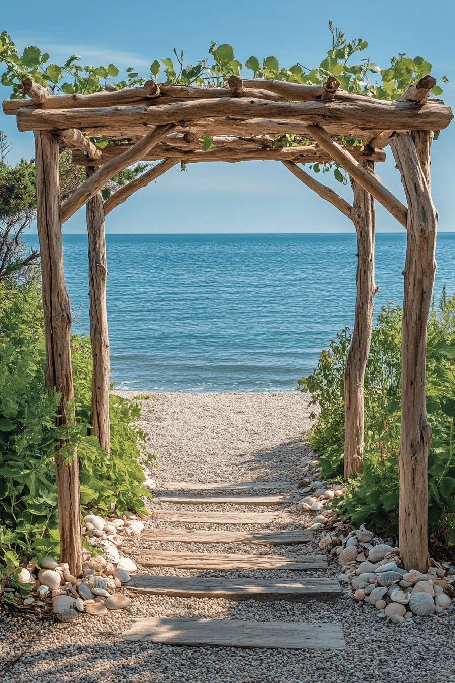 Create a relaxed seaside vibe with garden arbor ideas built for coastal environments. Natural elements like driftwood and subtle shell details enhance the look. Climbing plants suited for ocean climates soften the structure. The overall design feels breezy and effortless. It’s perfect for beach-style gardens. Discover garden arbor ideas inspired by coastal living.