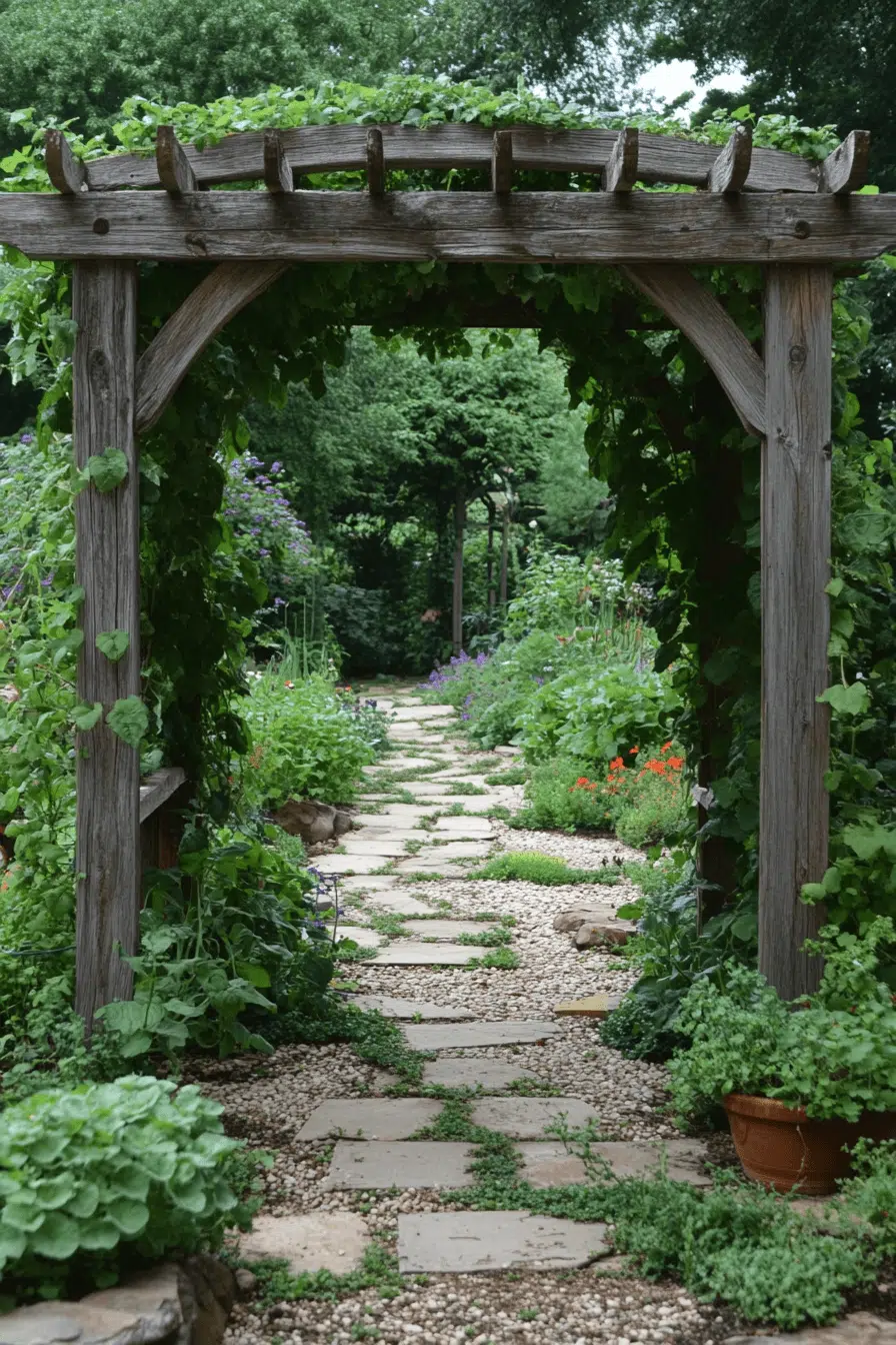 Functional and fresh, garden arbor ideas featuring herbs create a beautiful and useful garden feature. Fragrant plants like mint and basil add both greenery and convenience. Vertical growing maximizes smaller spaces efficiently. It’s ideal for kitchen-focused gardens. The setup feels lively and practical. Explore garden arbor ideas that merge style and function.