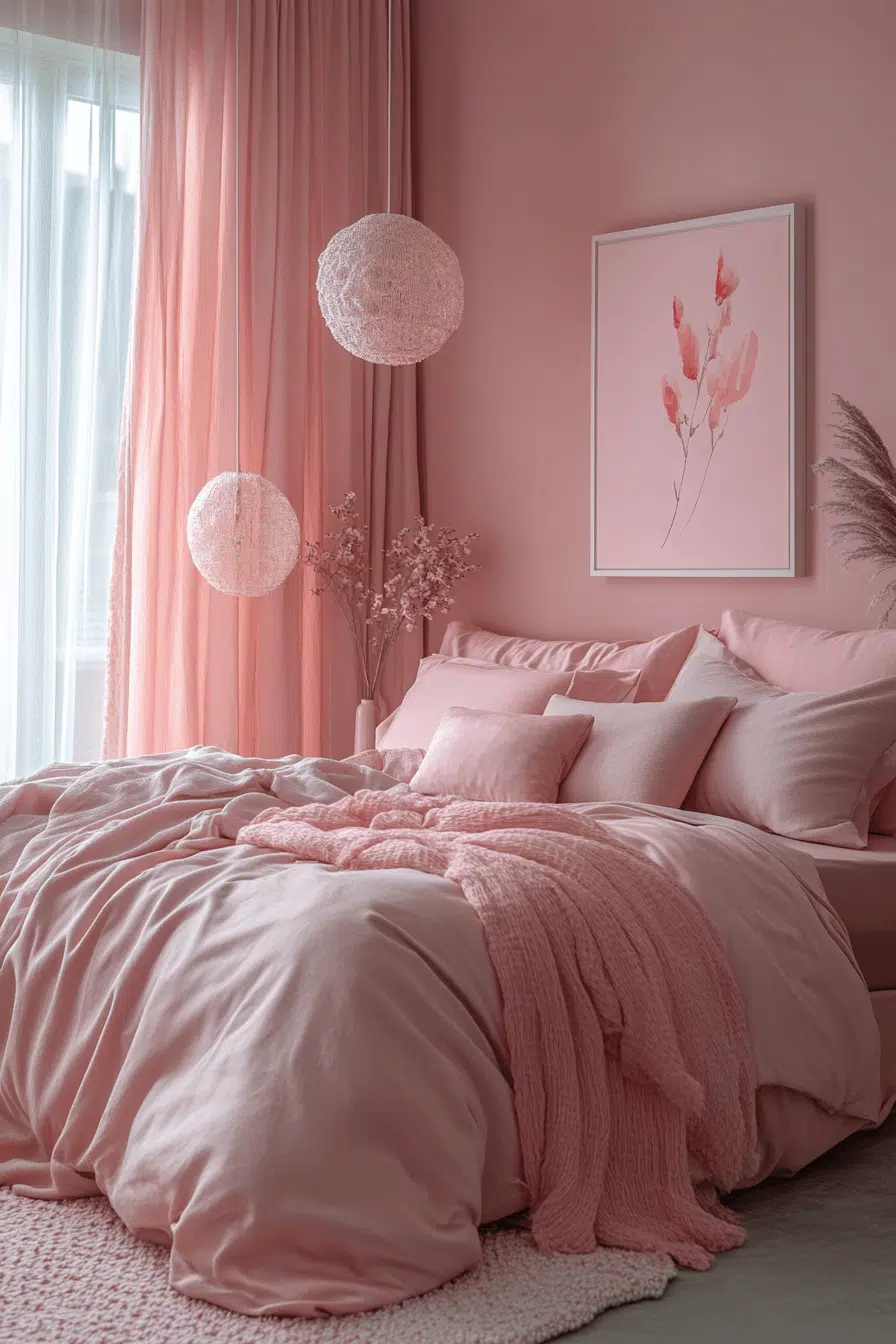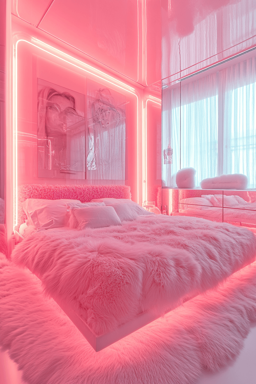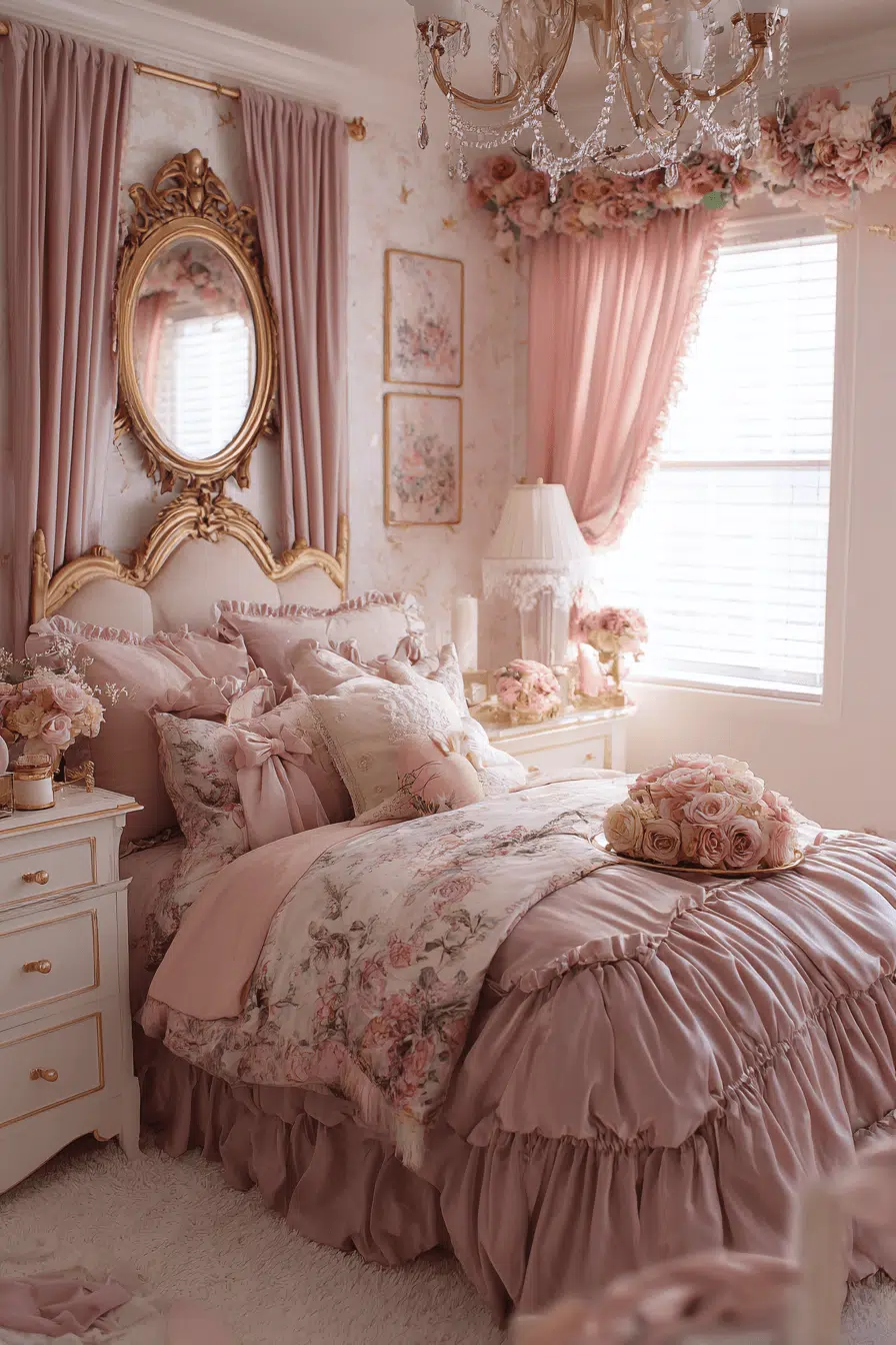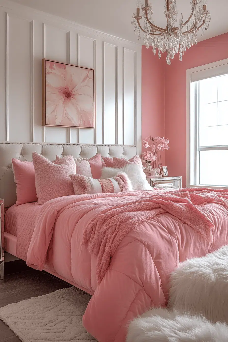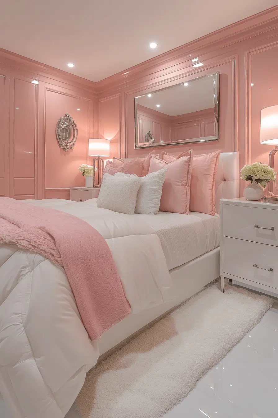 A vibrant mix of rosy hues and polished metallic finishes can instantly transform girlie room decor into a bold and fashion-forward space. Reflective surfaces like chrome mirrors and glossy furniture bounce light beautifully while keeping the room feeling open. Statement lighting adds a dramatic touch without overwhelming the design. The contrast between soft pink tones and sleek accents creates a modern, elevated look. It’s perfect for anyone who loves a glamorous yet playful vibe. Discover more girlie room decor ideas that blend shine with confidence.