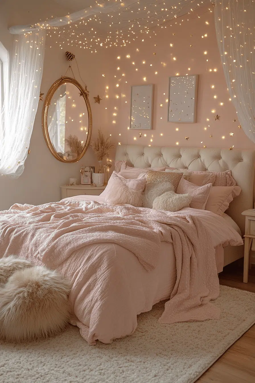 Star-inspired elements can turn girlie room decor into a glowing and magical escape. Fairy lights, celestial projections, and soft pink tones create a dreamy atmosphere. Cozy fabrics and metallic accents add warmth and depth. The room feels both relaxing and visually captivating. It’s like bringing a touch of the night sky indoors. Explore more girlie room decor ideas with a celestial theme.
