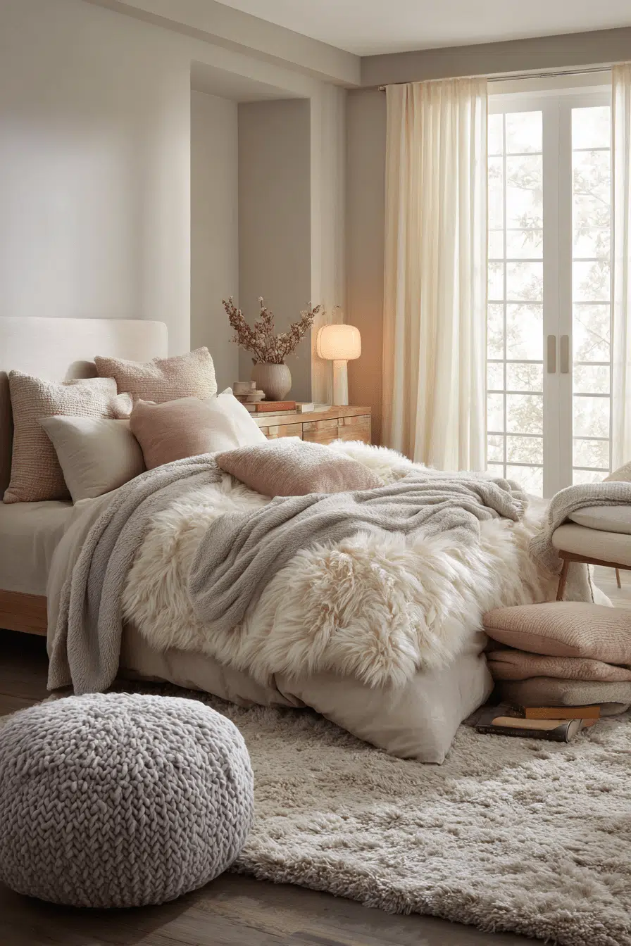 Plush textures can turn girlie room decor into a soft and inviting escape that feels incredibly cozy. Faux fur rugs, fluffy throws, and velvet pillows add layers of comfort. Light tones enhance the airy, welcoming vibe. Adding a cozy seating area makes the space even more relaxing. The result feels warm and luxurious. Explore more girlie room decor ideas that prioritize comfort.
