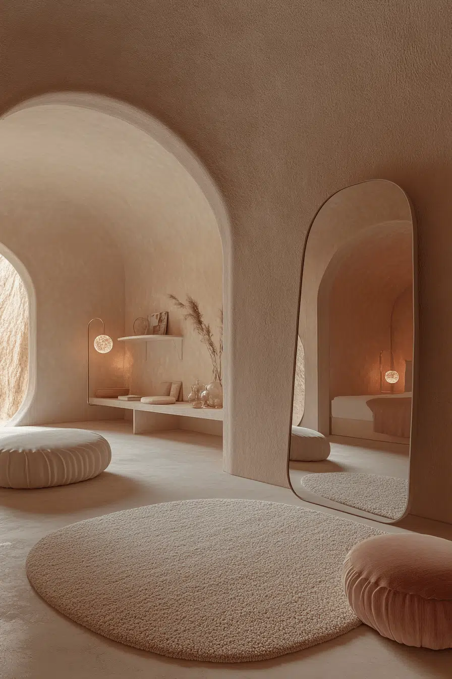 Curved shapes can add a trendy and modern touch to girlie room decor while keeping it soft. Rounded mirrors and furniture create a smooth flow. Neutral tones with blush accents maintain balance. Textures add depth and comfort. The overall look feels stylish and feminine. Discover more girlie room decor ideas with modern curves.