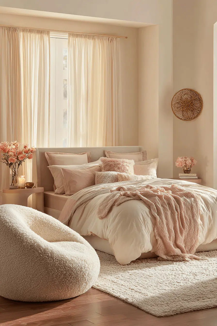 Neutral tones can create a calming and refined version of girlie room decor that feels timeless. Warm creams, taupes, and soft pink accents blend seamlessly together. Layered textures like rugs and cozy fabrics add depth without bold color. The space feels peaceful and effortlessly elegant. It’s perfect for everyday comfort. Discover more girlie room decor ideas with neutral sophistication.