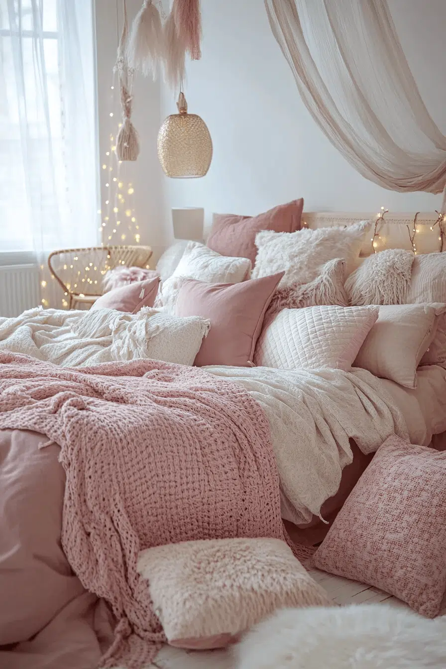 Layered bedding can transform girlie room decor into a plush and luxurious retreat. Mixing fabrics creates depth and visual appeal. Soft lighting enhances the cozy feel. A padded headboard adds both comfort and style. The space feels inviting and elegant. Explore more girlie room decor ideas with layered comfort.