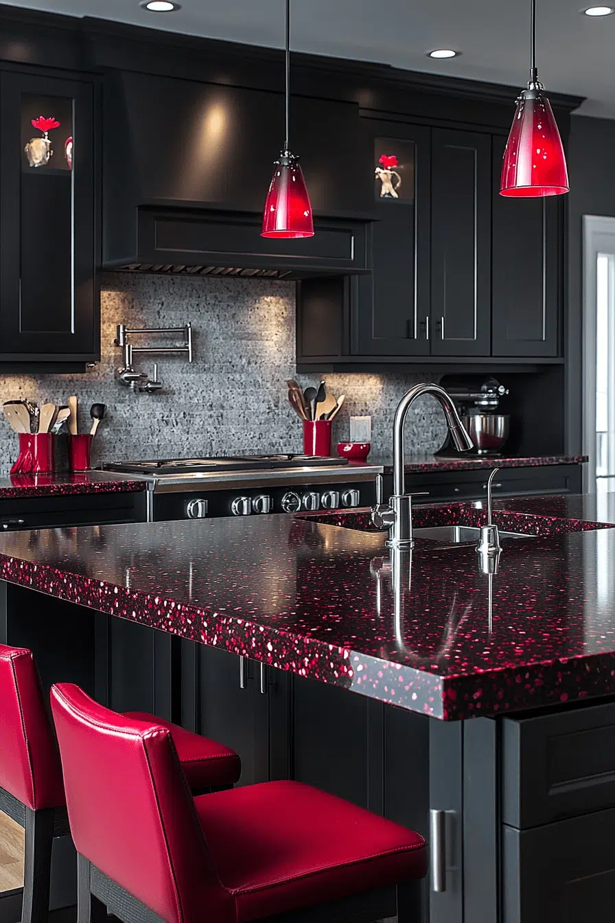 Vibrant crimson tones with contrasting flecks bring energy and boldness to granite countertops, making them a standout feature in any space. The mix of colors adds dimension while keeping the design balanced. This surface pairs best with neutral surroundings to highlight its intensity. Granite’s durability ensures long-term reliability. The effect feels striking and memorable. View more granite countertops that make a statement.