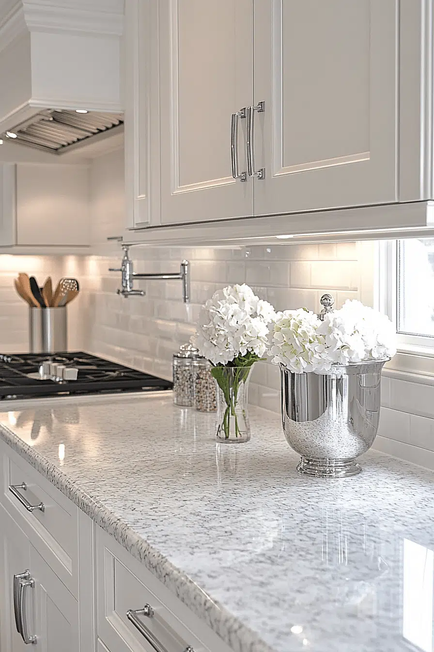 Clean white surfaces with minimal detailing give granite countertops a timeless, airy feel that brightens any room. The simplicity allows surrounding design elements to stand out. This versatile look fits seamlessly into many styles. Granite’s durability ensures it performs well over time. The result feels fresh and refined. See more granite countertops with classic simplicity.