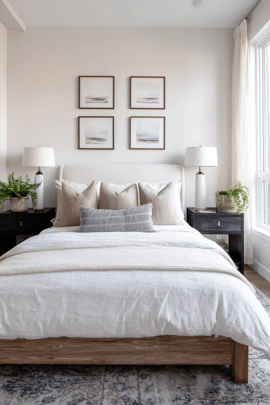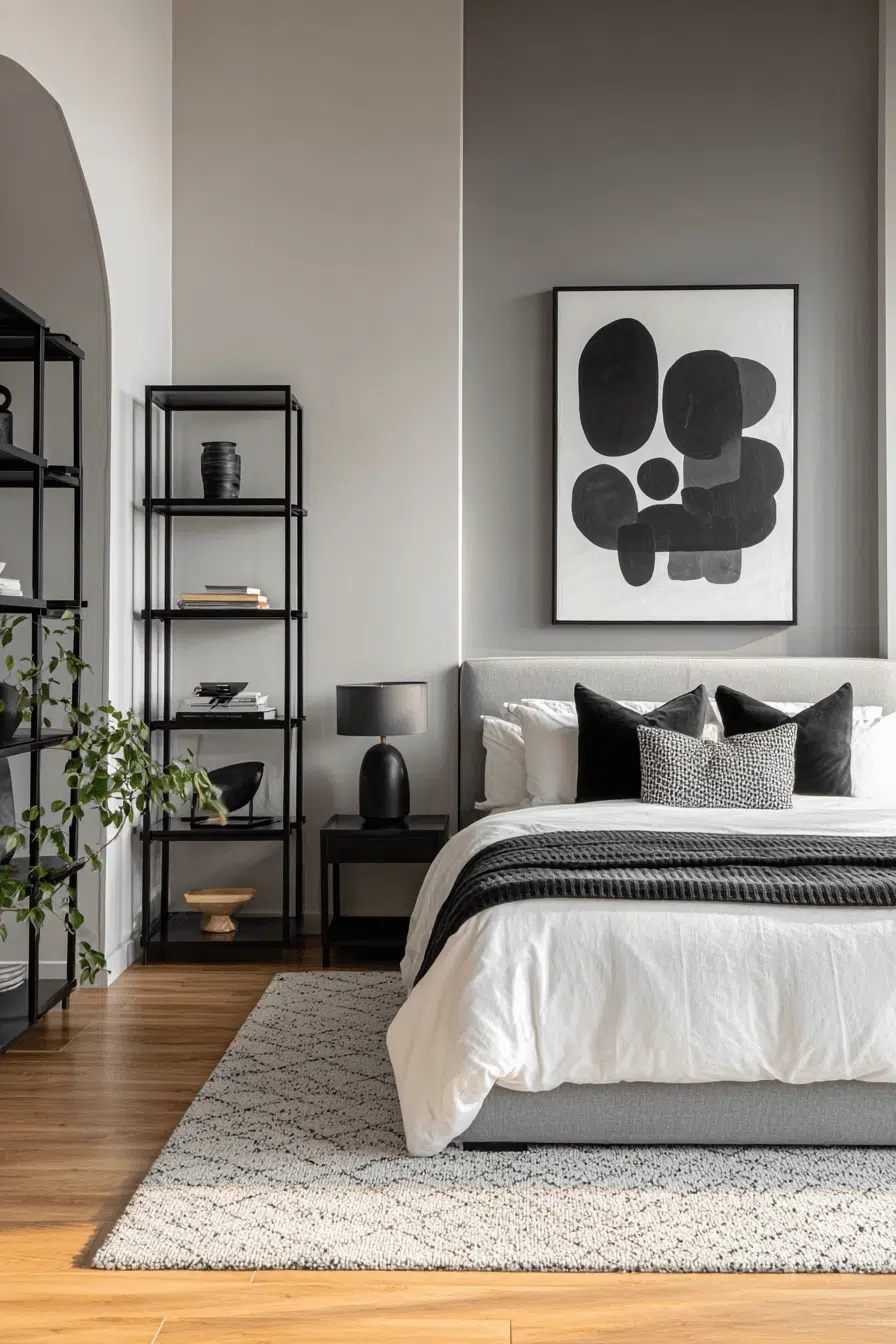 Monochrome styling gives a japandi small bedroom a sleek, modern edge while keeping it calm. Layered shades create subtle depth. Minimal decor enhances clarity. The space feels open and refined. Each detail adds balance. Style your japandi small bedroom with modern monochrome!