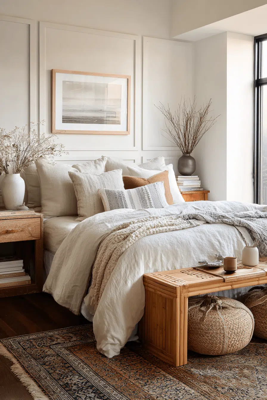 19. Soft Layered Cozy Bedroom