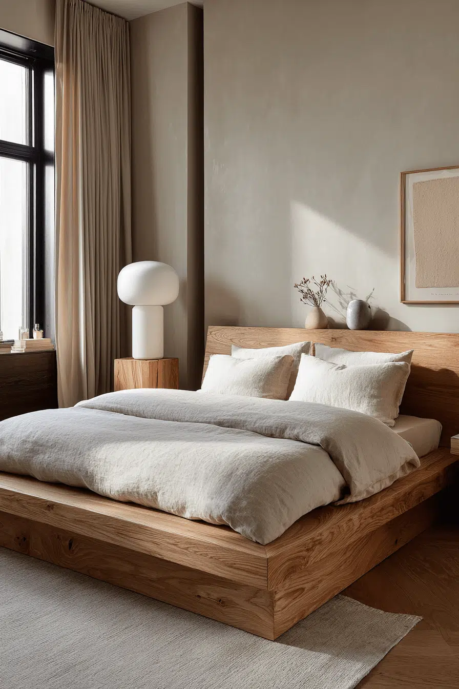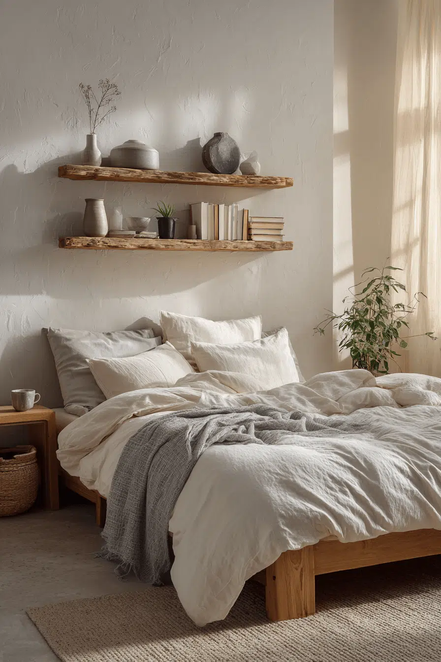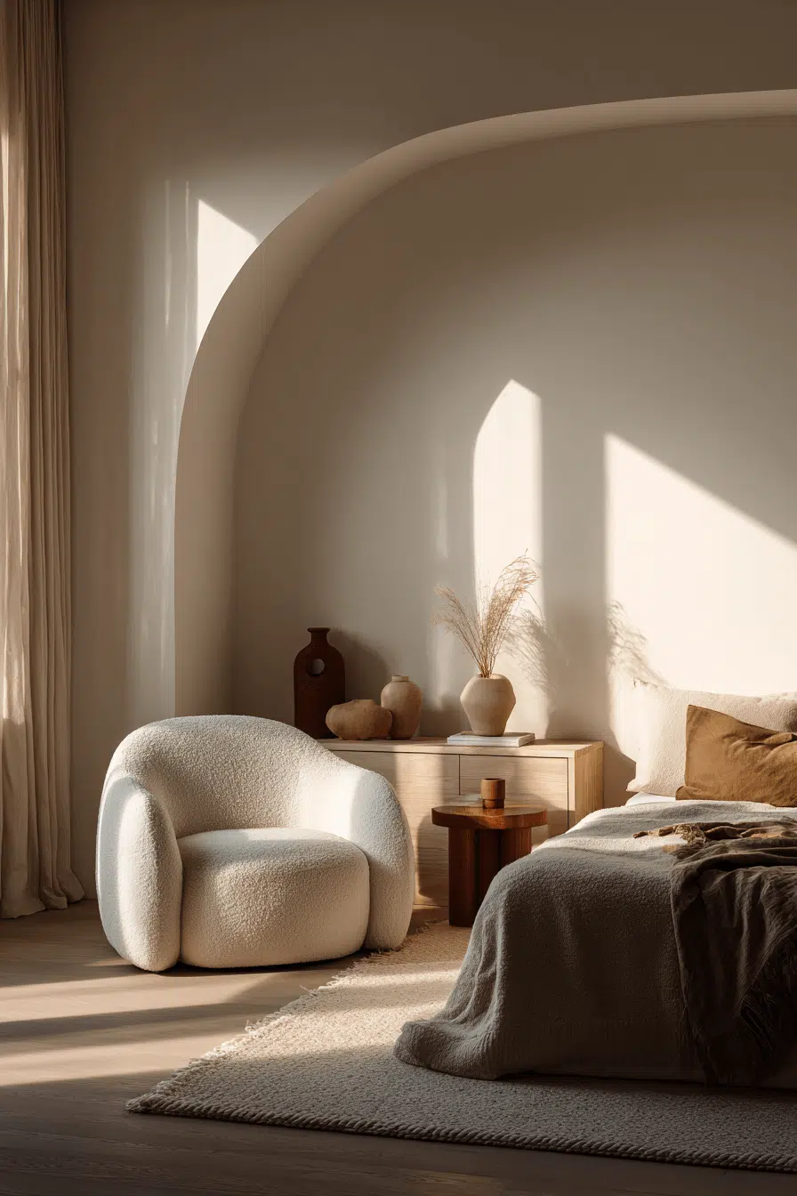Rounded forms bring softness into a japandi small bedroom, balancing structure with comfort. Gentle shapes create a welcoming vibe. The minimalist design stays intact. Each detail adds warmth. The space feels calm and approachable. Soften your japandi small bedroom with curves!