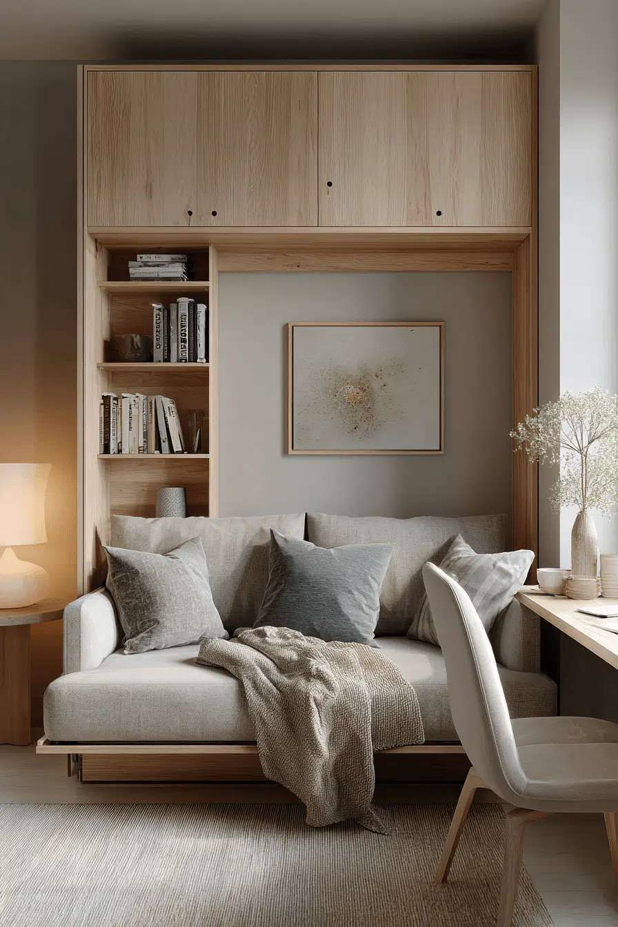Deep comfort defines a japandi small bedroom designed for rest and quiet moments. Soft materials and calming tones create a peaceful escape. Sound-softening elements enhance the relaxing vibe. The space feels private and soothing. Every detail encourages relaxation. Turn your japandi small bedroom into a restful haven!
