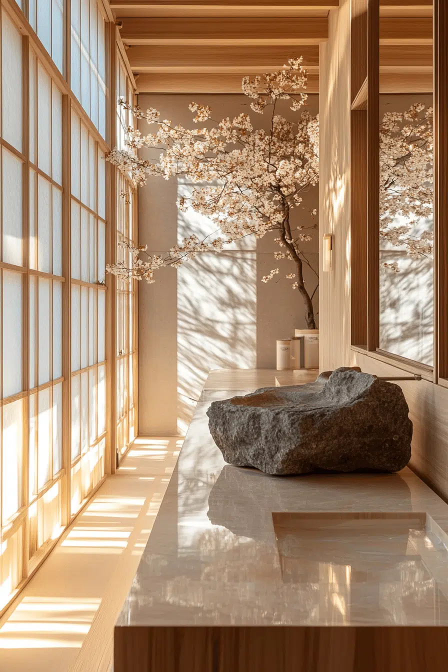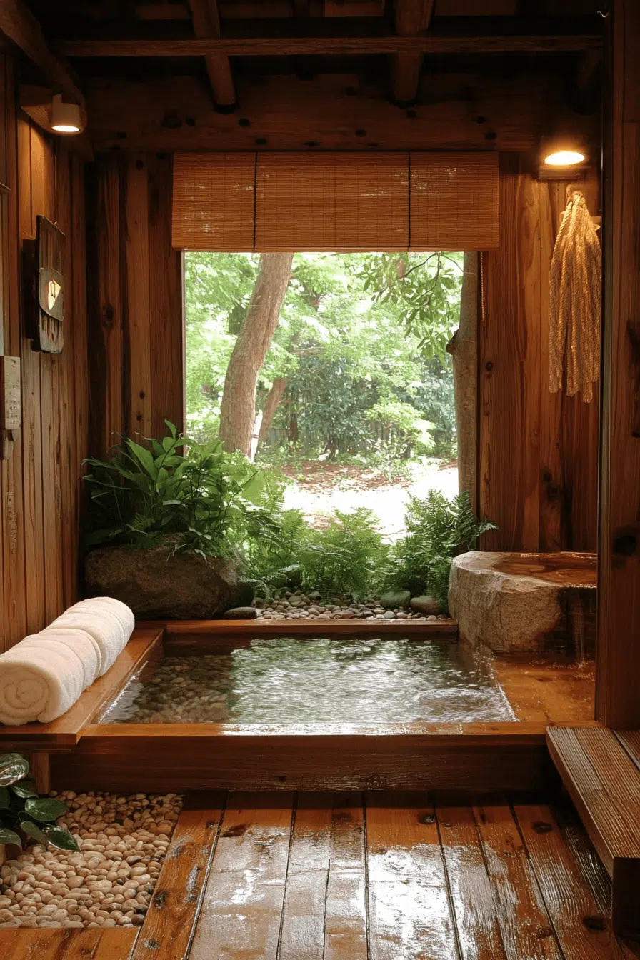 Natural harmony shapes a japanese bathroom that reflects the beauty of outdoor landscapes through carefully chosen materials and textures. Warm wood and stone finishes create a grounded, earthy feel. Soft lighting enhances the peaceful atmosphere without overpowering the space. Subtle water elements introduce gentle movement. Each detail feels connected and balanced. The environment encourages rest and clarity. Discover this nature-inspired japanese bathroom aesthetic today!