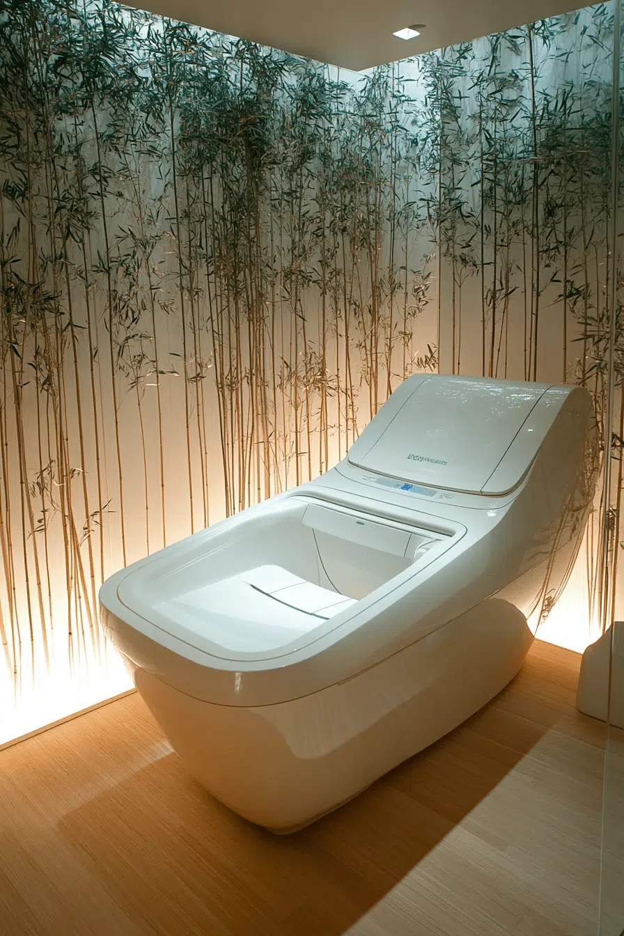Modern technology enhances a japanese bathroom with smart features that improve comfort while maintaining simplicity. Touch controls and sleek fixtures blend seamlessly into the design. LED lighting adds a soft futuristic glow. Natural elements maintain warmth. The space feels balanced between innovation and tradition. Function meets calm design beautifully. Explore modern japanese bathroom upgrades today!