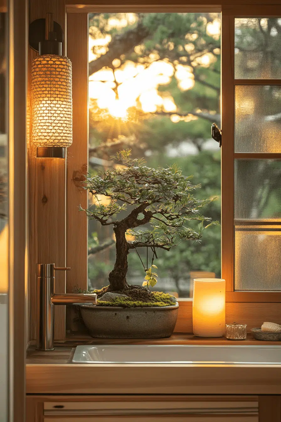 Artful greenery enhances a japanese bathroom with bonsai-inspired elements that add focus and tranquility. Small natural accents create visual interest. Organic textures keep the design grounded. Minimal styling maintains clarity. The space feels balanced and calm. Artistic touches elevate the look. Explore nature-inspired japanese bathroom ideas now!
