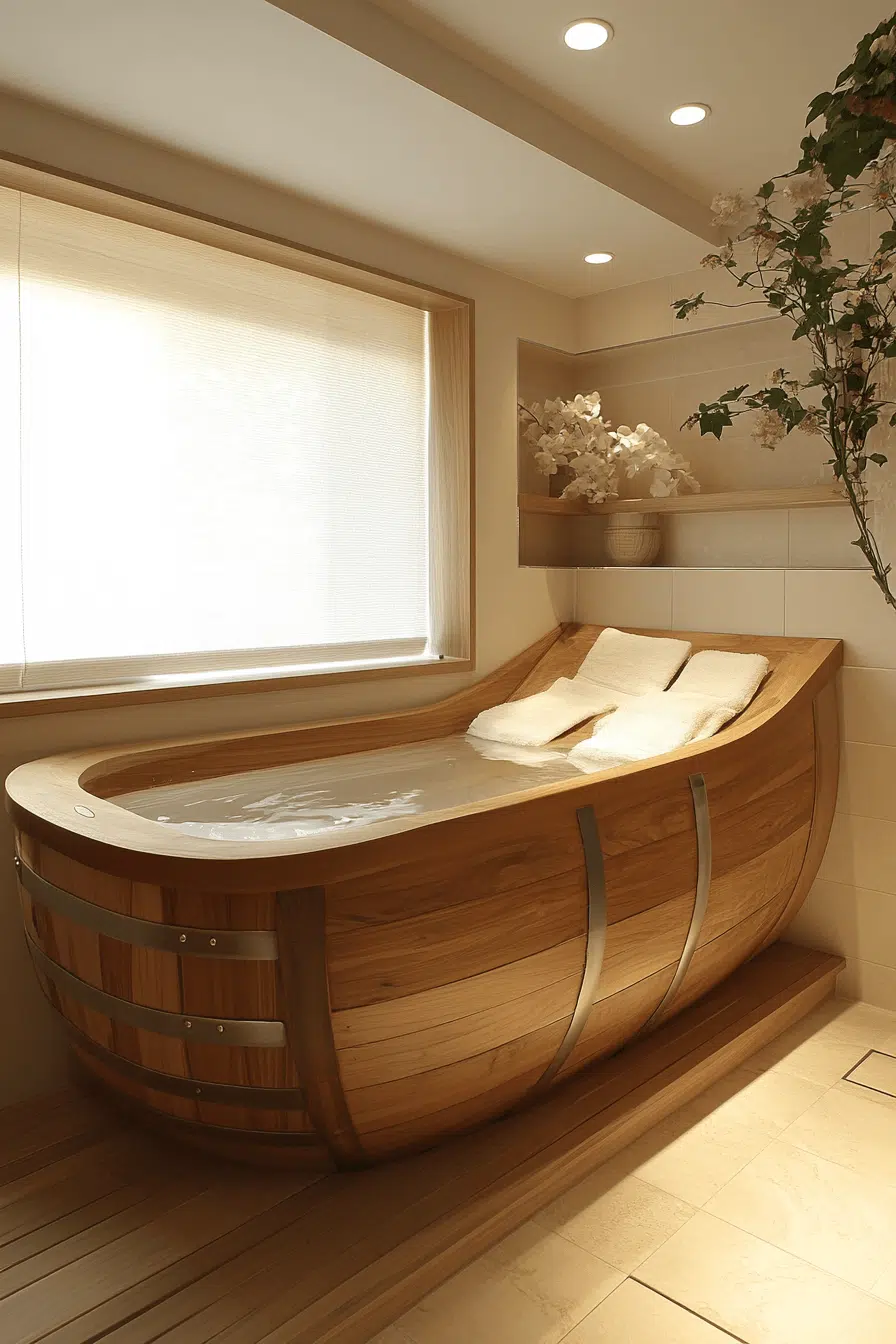 Soothing retreat energy fills a japanese bathroom inspired by traditional soaking rituals and spa-like comfort. A deep tub becomes the heart of the design, surrounded by natural textures that enhance relaxation. Warm wood and stone create an organic, inviting feel. Soft steam and ambient lighting elevate the entire bathing experience. The gentle sound of water completes the calming atmosphere. The space encourages slow, mindful living. Recreate this spa-inspired japanese bathroom today!