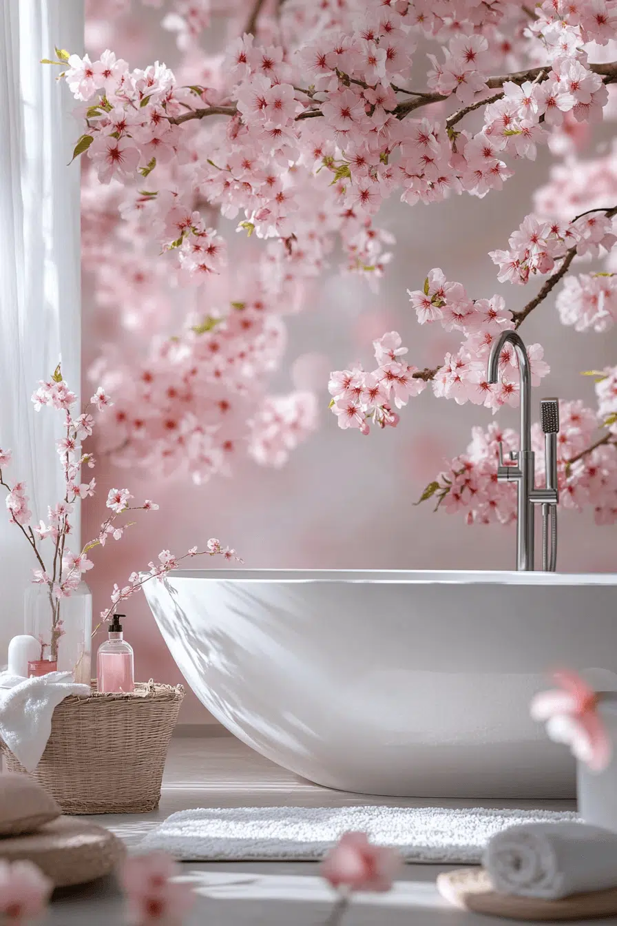Soft floral influence brightens a japanese bathroom with gentle colors and delicate design elements that feel refreshing and calm. Light tones create an airy environment. Subtle patterns add elegance. Soft textures enhance comfort. The space feels uplifting and serene. Beauty meets simplicity effortlessly. Discover floral japanese bathroom ideas now!