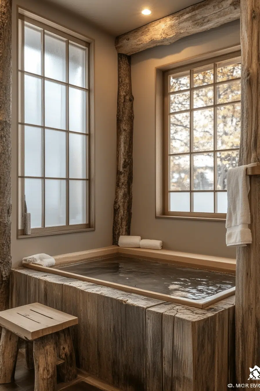 Authentic character defines a japanese bathroom inspired by wabi-sabi principles that celebrate natural imperfection. Raw textures like aged wood and uneven stone create depth and personality. Minimal decor allows these materials to shine. Soft lighting enhances their beauty. The design feels organic and calming. Every detail feels intentional yet effortless. Discover wabi-sabi japanese bathroom inspiration now!
