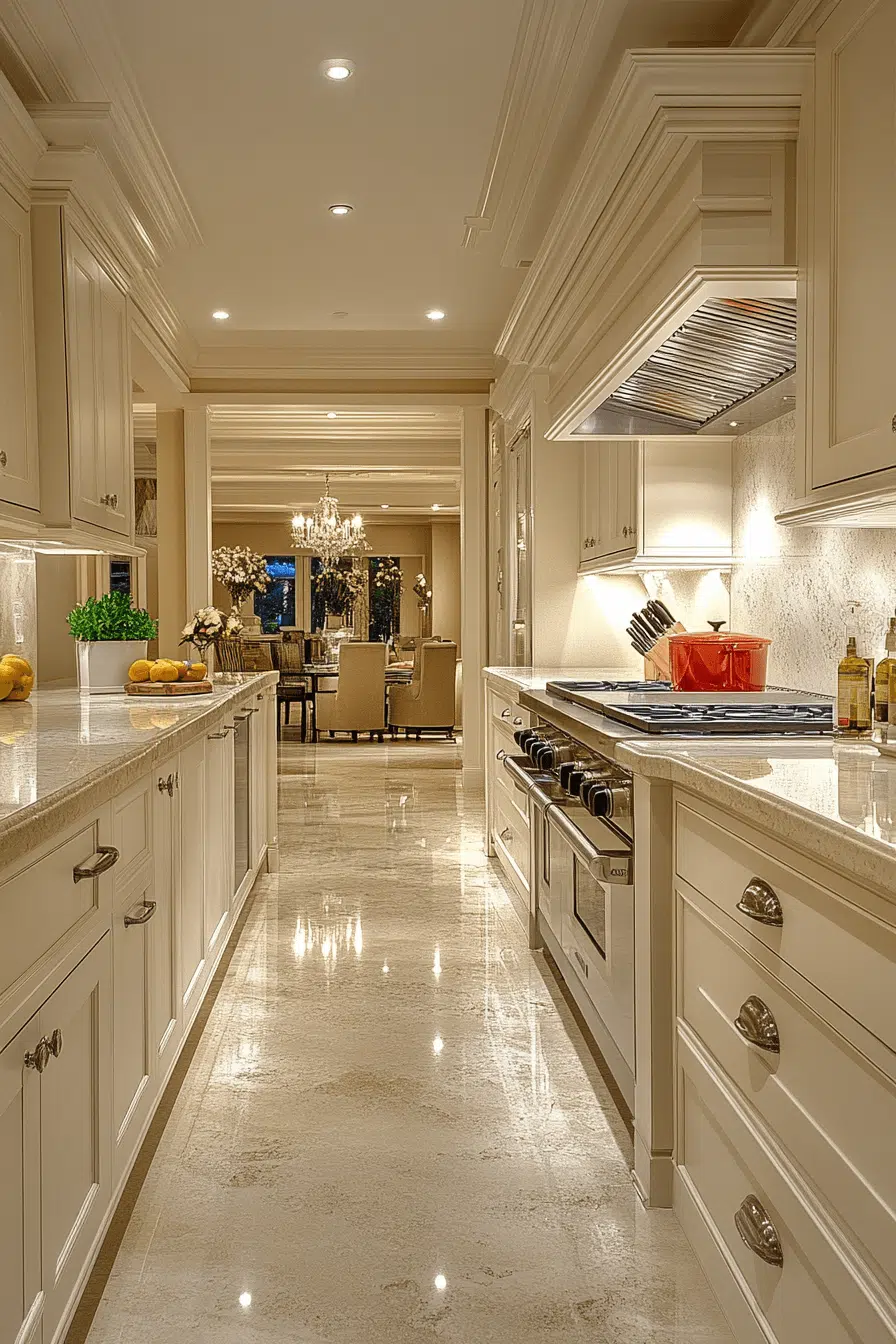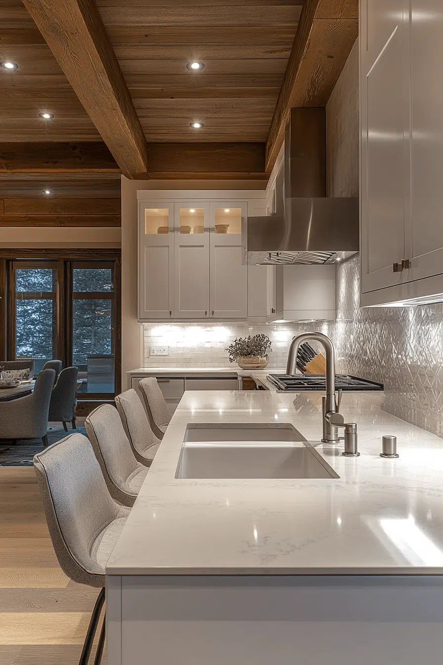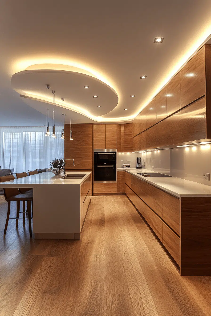 Indirect illumination gains elegance through cove-style kitchen lighting ideas. Light gently reflects across ceilings or walls for a soft, luxurious effect. This approach enhances architectural features while expanding the visual space. Cove lighting suits modern and high-ceiling kitchens particularly well. The ambiance feels calm and refined. Explore cove lighting ideas that introduce understated luxury into your kitchen!