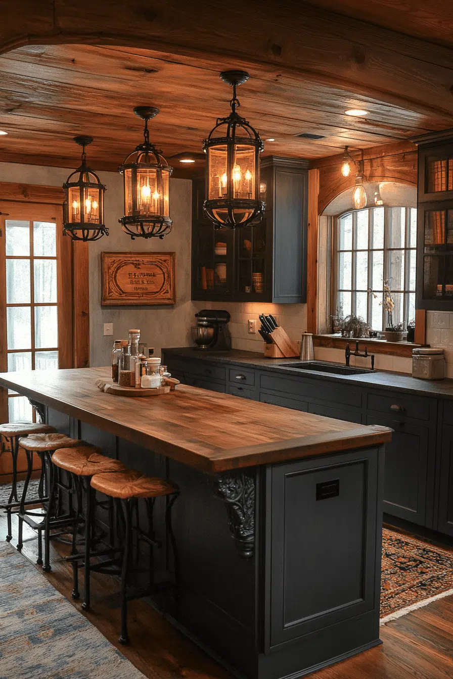 Country-inspired kitchens benefit from lantern-style kitchen lighting ideas that emphasize warmth. Softly diffused light creates a welcoming environment for gathering spaces. Natural materials like wood and aged metals contribute texture and charm. These fixtures perform beautifully over islands or dining tables. Lantern designs blend comfort with visual appeal. Explore rustic lantern lighting ideas that bring timeless warmth into your kitchen!