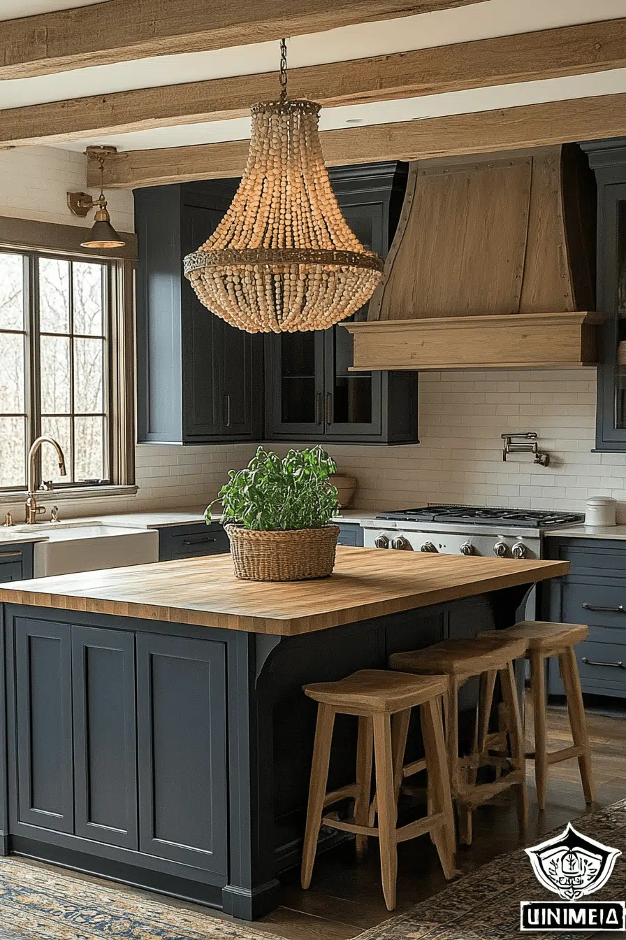 Artisan influence shines with beaded chandeliers as farmhouse-inspired kitchen lighting ideas. Layered beads create visual texture and movement. Light filters softly for a warm, welcoming glow. These fixtures work beautifully over islands or dining spaces. They add character without heaviness. Discover beaded chandelier lighting ideas that feel cozy yet refined!