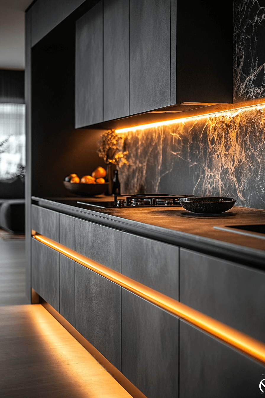 Mood-enhancing illumination becomes achievable through LED strips as contemporary kitchen lighting ideas. Installed beneath shelving, cabinetry, or islands, they add a soft yet striking glow. Adjustable color temperatures allow the atmosphere to shift from warm to cool effortlessly. Their flexibility supports installation in narrow or unconventional spaces. The overall effect feels both modern and inviting. Explore LED strip lighting ideas that transform kitchens with subtle sophistication!