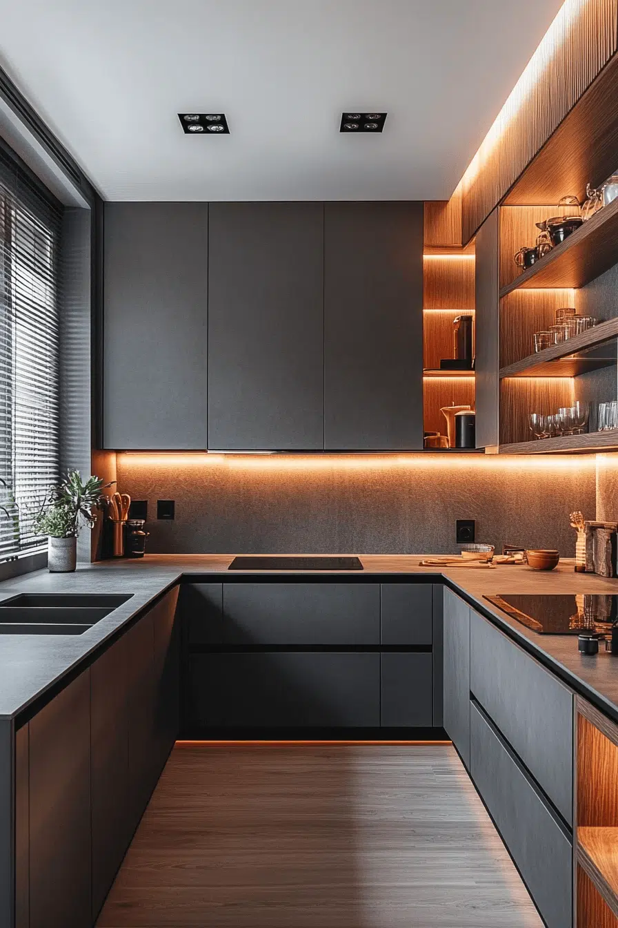 Light grey kitchen cabinets with sharp lines and structured forms bring modern confidence. The neutral tone allows architectural shapes to shine. Lighting enhances the geometry without overwhelming. Grey balances bold structure with softness. This style feels grounded and striking. See how structure comes alive in grey kitchens!