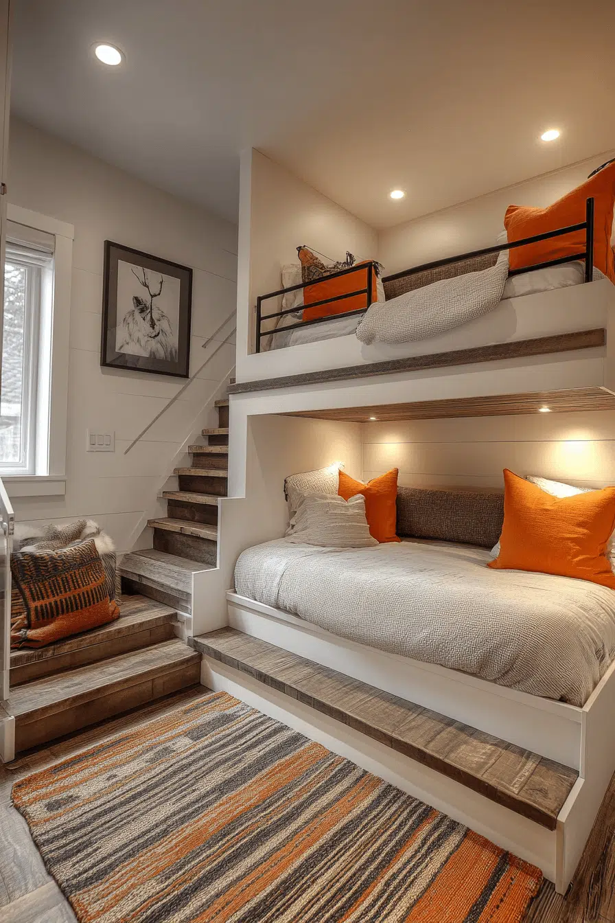 Active households benefit from loft beds for small rooms that encourage movement. Built-in climbing features or hanging elements add energy without using extra space. Safety remains integrated throughout the structure. Fun becomes part of everyday living. It’s playful and practical.