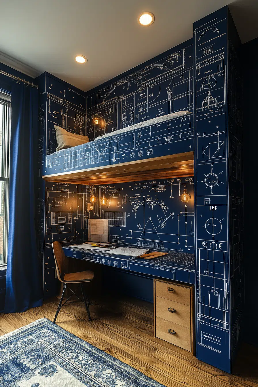 Futuristic flair defines loft beds for small rooms inspired by modern technology and space themes. Enclosed sleep areas and ambient lighting create a capsule-like feel. Despite the bold look, the design remains compact. It’s ideal for imaginative personalities. Function meets fantasy.