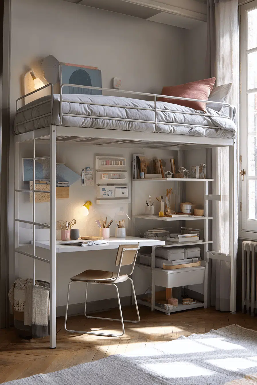 Organization becomes second nature with loft beds for small rooms that focus on built-in storage. Drawers, shelving, and cabinets fit neatly below the bed to reduce clutter. This approach eliminates the need for bulky furniture. The room feels calmer and more open. Everything has its place.