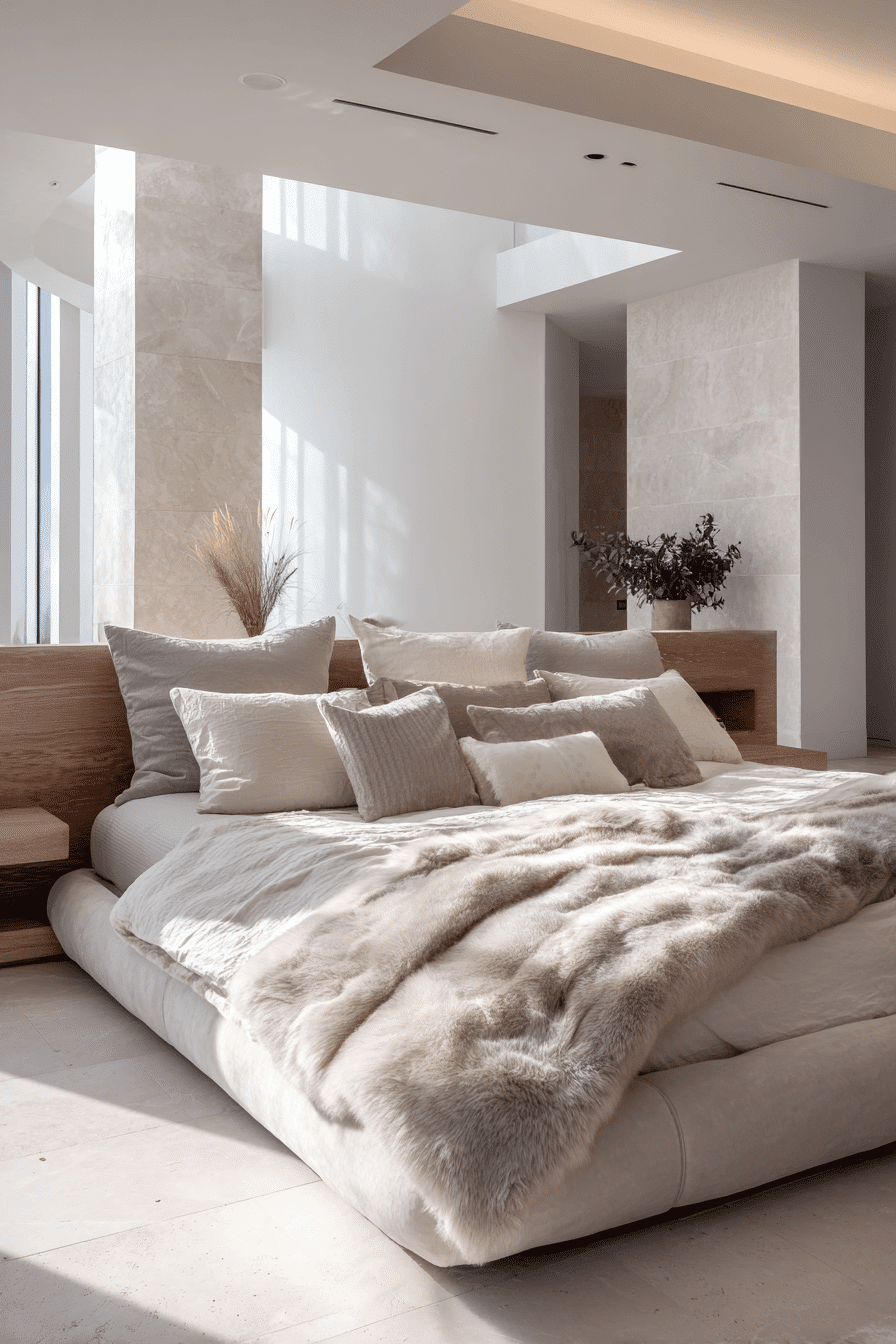 Textural layering enriches luxurious bedrooms with a combination of soft surfaces that create comfort and visual depth. Plush rugs and layered bedding build a cozy atmosphere. Neutral tones keep the look cohesive. Subtle contrasts add interest without clutter. Lighting enhances every texture. The space feels inviting and refined. Add depth through layering today!
