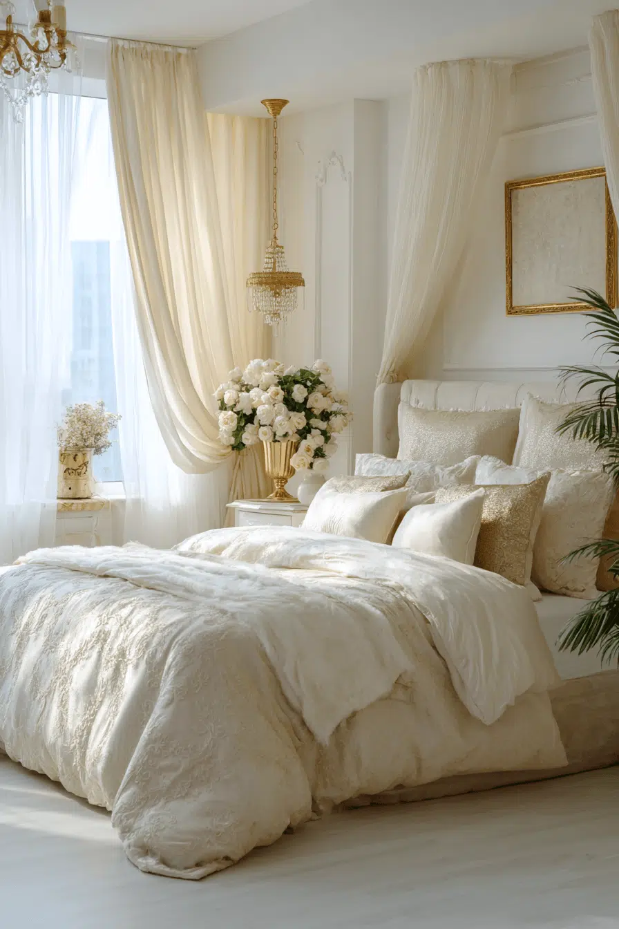 Soft gold accents elevate luxurious bedrooms with a delicate glow that feels elegant and timeless. Light neutral tones create a calm foundation. Subtle metallic details introduce warmth. Plush textures add softness and comfort. Ambient lighting ties everything together. The space feels graceful and cohesive. Create a soft golden retreat today!