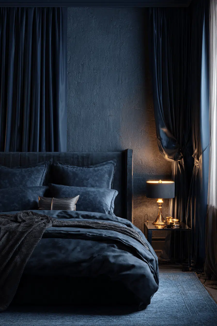 Rich dark palettes shape luxurious bedrooms into intimate, cocoon-like spaces filled with depth and sophistication. Deep shades wrap the room in warmth. Layered lighting adds dimension and glow. Plush fabrics enhance comfort. Metallic accents provide contrast. The atmosphere feels bold and cozy. Explore moody luxury in your bedroom today!