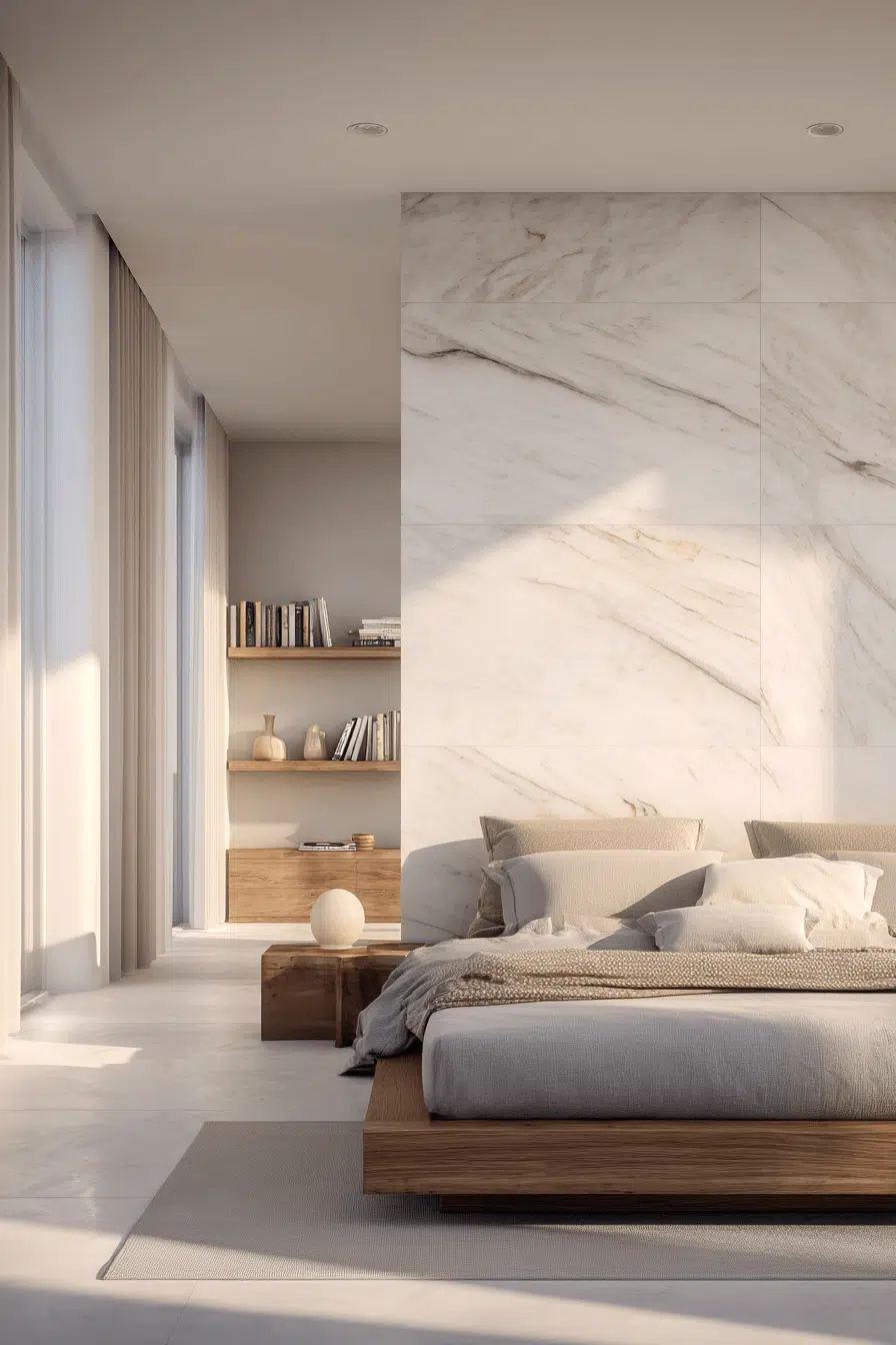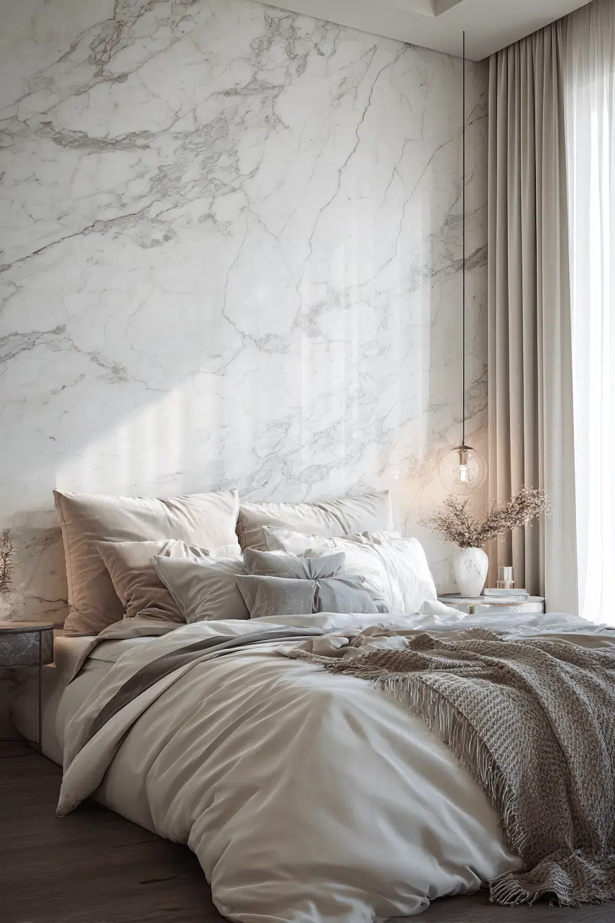 Stone-inspired details enhance luxurious bedrooms with smooth, elegant surfaces that bring timeless appeal. Subtle veining adds character without overwhelming the design. Cool tones pair beautifully with soft textiles. Minimal styling keeps the look clean and elevated. Lighting highlights the material’s natural beauty. The space feels polished and modern. Introduce stone-inspired luxury into your bedroom today!