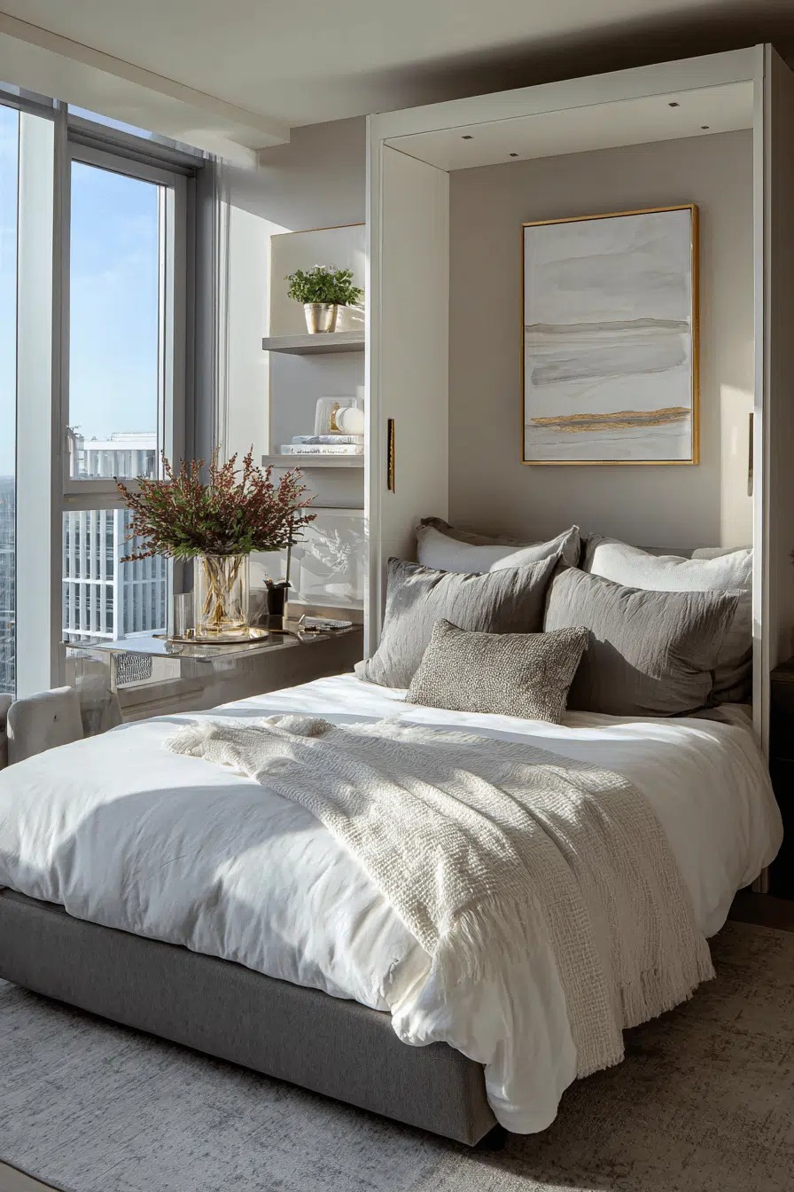 Space-smart luxury transforms luxurious bedrooms in smaller layouts into efficient yet elegant retreats. Compact designs maximize functionality. Neutral tones create openness. Multi-use furniture adds practicality. Soft textures maintain comfort. The space feels refined and purposeful. Elevate your small bedroom design today!