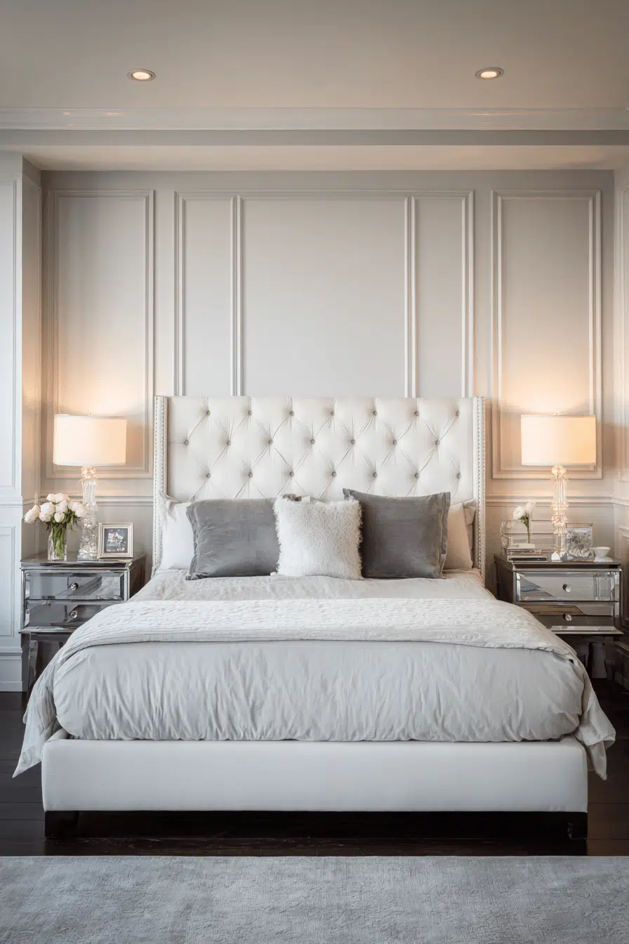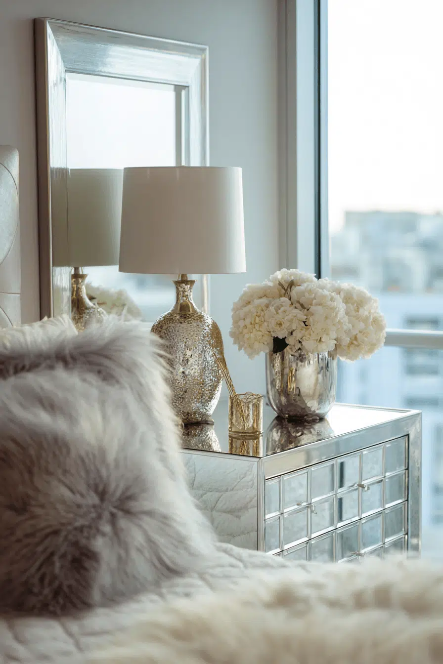 Reflective finishes transform luxurious bedrooms with sleek surfaces that amplify light and create a polished aesthetic. Glossy elements brighten the space instantly. Metallic accents add a touch of glamour. Soft fabrics balance the shine. Lighting enhances reflections beautifully. The overall feel is bold yet elegant. Bring luminous style into your bedroom today!