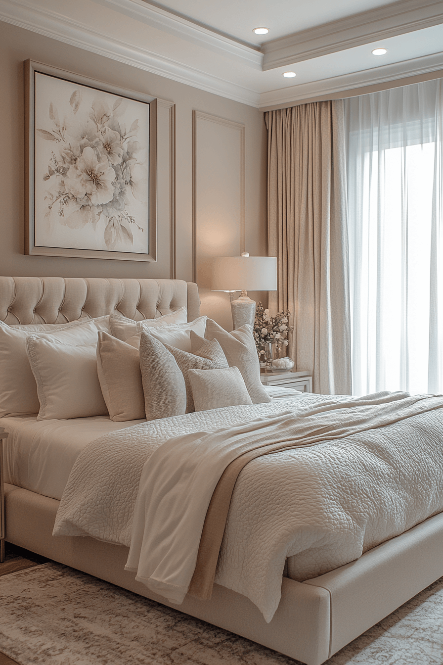 Soft neutrals and luxurious textures transform this luxury bedroom master into a calming escape from the everyday. A generous layout and inviting seating nooks make it a place to truly unwind. Every element whispers comfort.