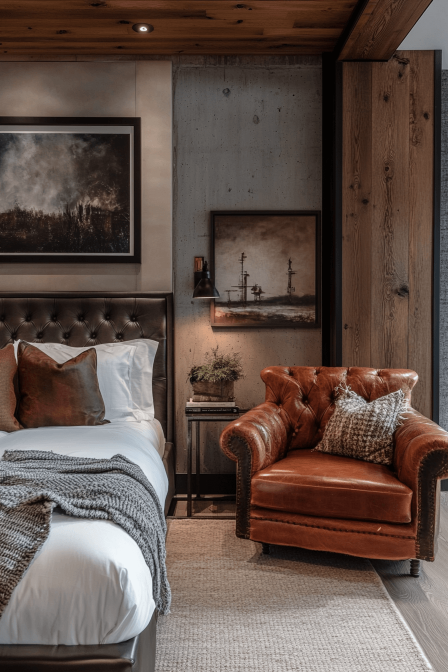 Stone and wood meet in a seamless blend of rustic charm and upscale refinement. Each organic texture adds warmth, while polished décor elements elevate the overall feel to high-end sophistication.
