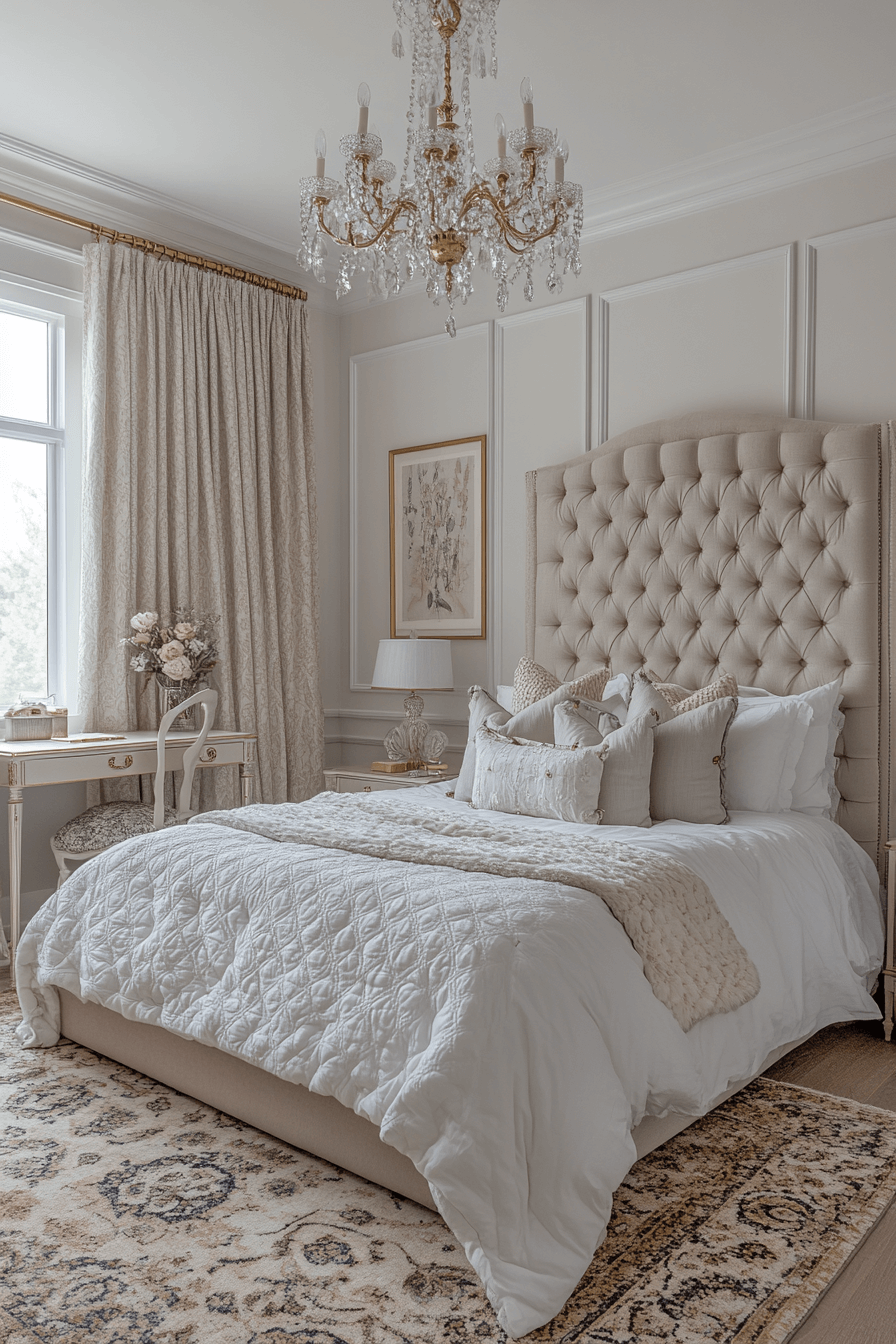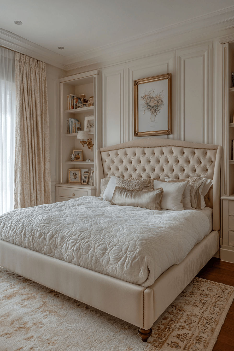 This serene Luxury Kids Bedroom uses neutral palettes, streamlined furniture, and cozy layers to create a timeless retreat. Cream, blush, and soft gray tones flow seamlessly, while mirrored accents and upholstered beds add elegance.