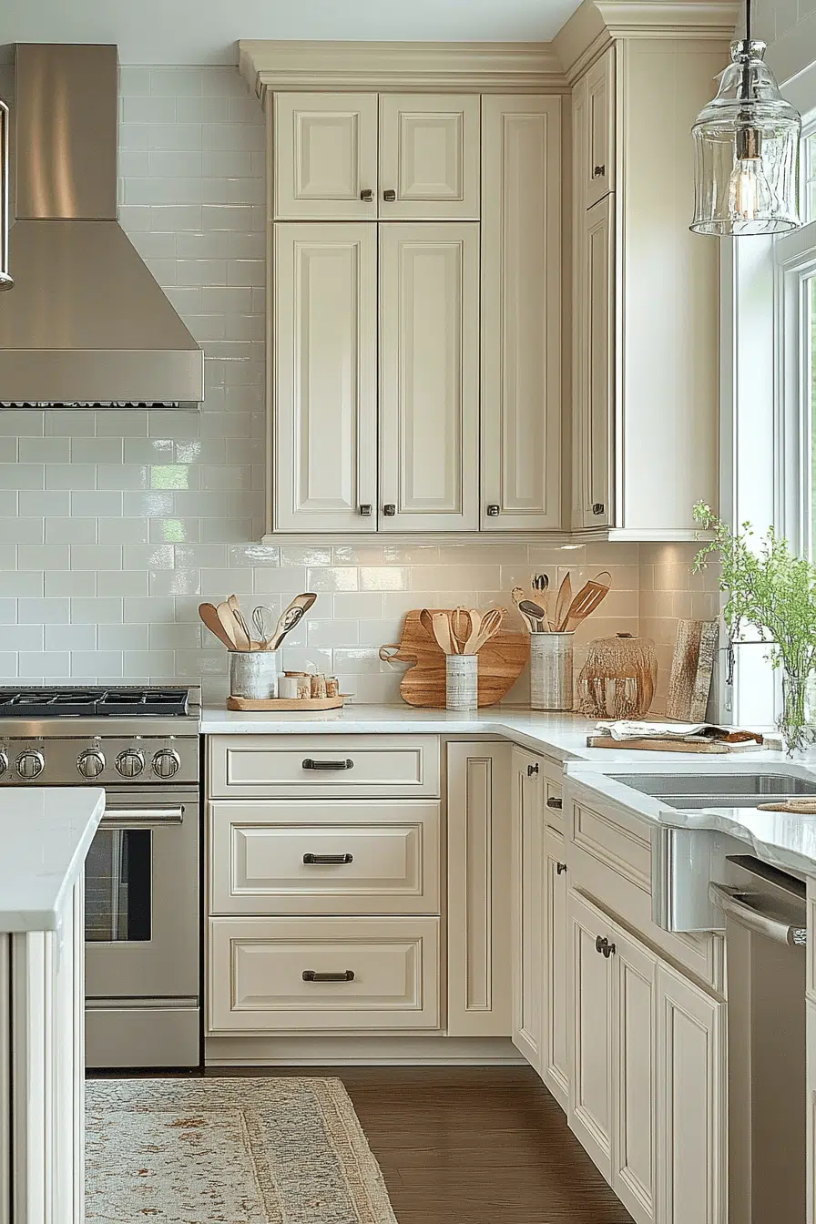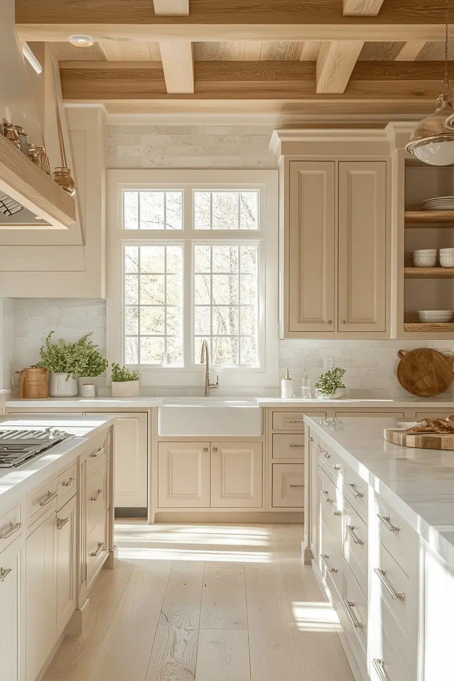 Soft neutral maple kitchen cabinets create a balanced kitchen environment that feels calm and intentional. Their understated tone pairs effortlessly with warm whites and earthy textures. Gentle grain adds depth while maintaining visual peace. These cabinets are ideal for minimalist or wellness-focused homes. The atmosphere feels soothing and harmonious. Design your calm with neutral maple kitchen cabinets now!
