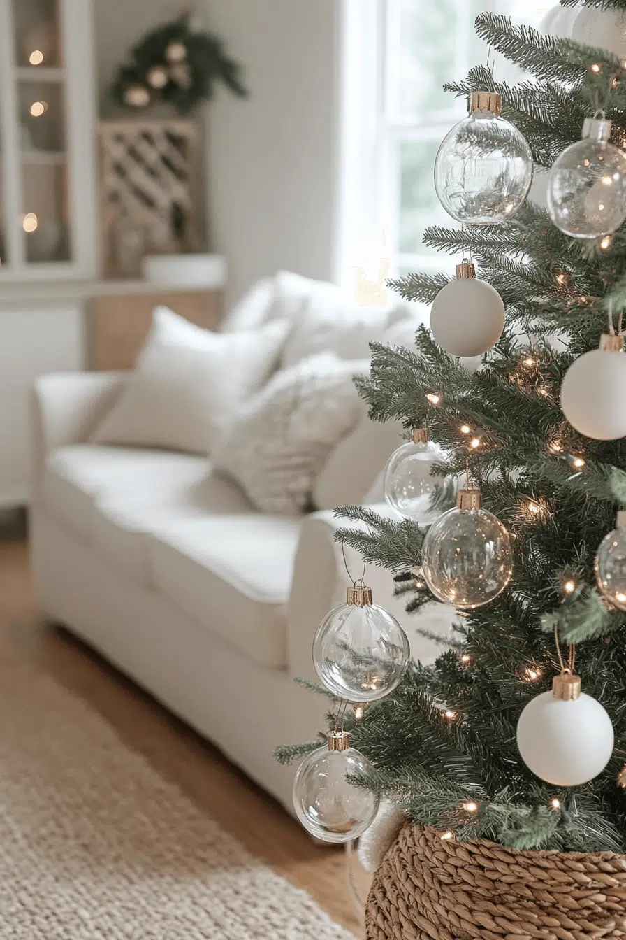 Clear glass ornaments bring weightless sparkle to minimalist christmas decor. Their transparency catches the light softly, adding beauty without clutter. Whether placed in bowls, hung on branches, or styled on windows, they enhance any setting with airy charm. The aesthetic is modern, refined, and budget-friendly.