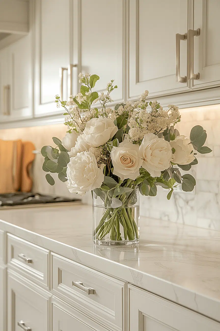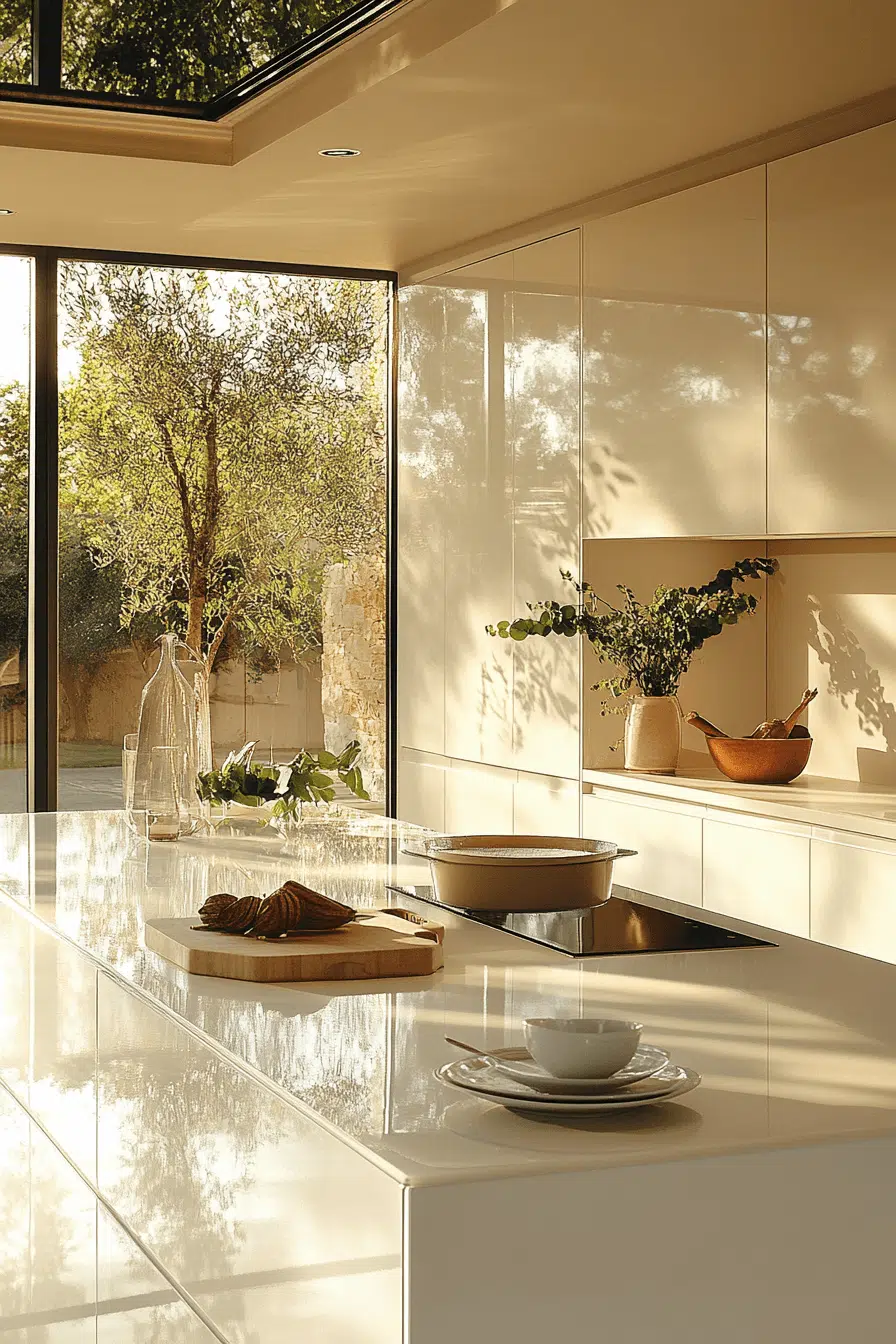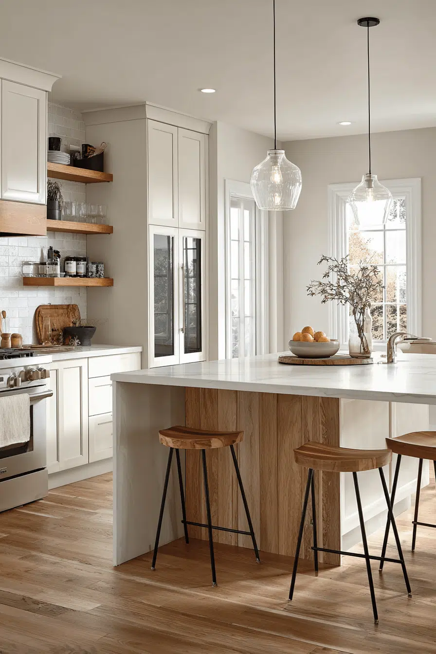 Openness becomes more noticeable when off white kitchen cabinets reflect a cloud-inspired lightness that allows brightness to travel freely. Smaller kitchens benefit from the expanded visual feel this tone provides. Pale woods and gentle textures complete the airy effect. The space feels relaxed and uplifting. Calm energy fills the room. Explore off white kitchen cabinets that visually expand your kitchen.