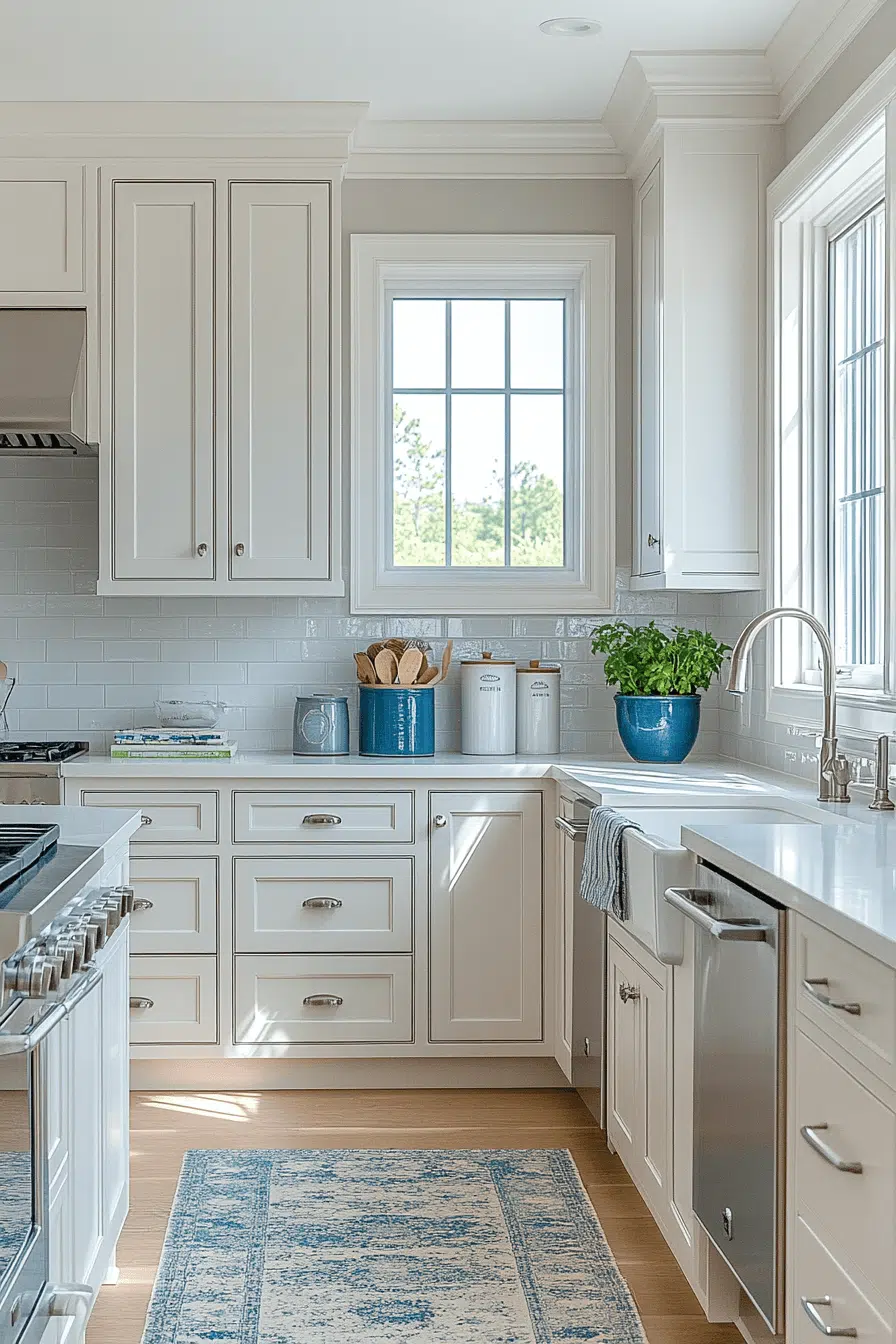 Coastal brightness enters the home when off white kitchen cabinets take on salt-inspired tones that feel fresh and energizing. Blues, natural fibers, and light woods complement this palette naturally. The kitchen feels breezy and open. Energy stays balanced and calm. A refreshed mood defines the space. Discover off white kitchen cabinets that capture coastal charm.