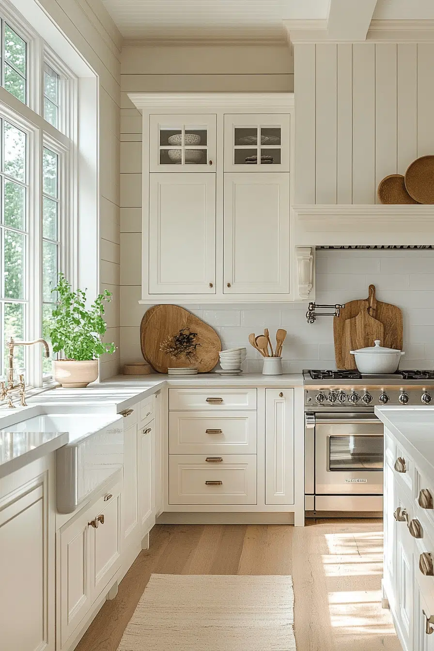 Off white kitchen cabinets offer the perfect balance between classic elegance and modern versatility. These 27 ideas showcase just how adaptable this timeless color choice can be – from crisp contemporary designs to warm farmhouse kitchens and everything in between. The beauty of off white lies in its ability to create a bright, welcoming foundation while allowing you to express your personal style through hardware, countertops, and accents. Whether you prefer the warmth of cream tones or the freshness of antique white, there’s an off white cabinet style that will make your kitchen feel both timeless and uniquely yours. Save your favorites and start planning the kitchen that will never go out of style!