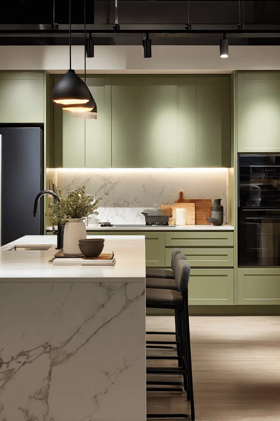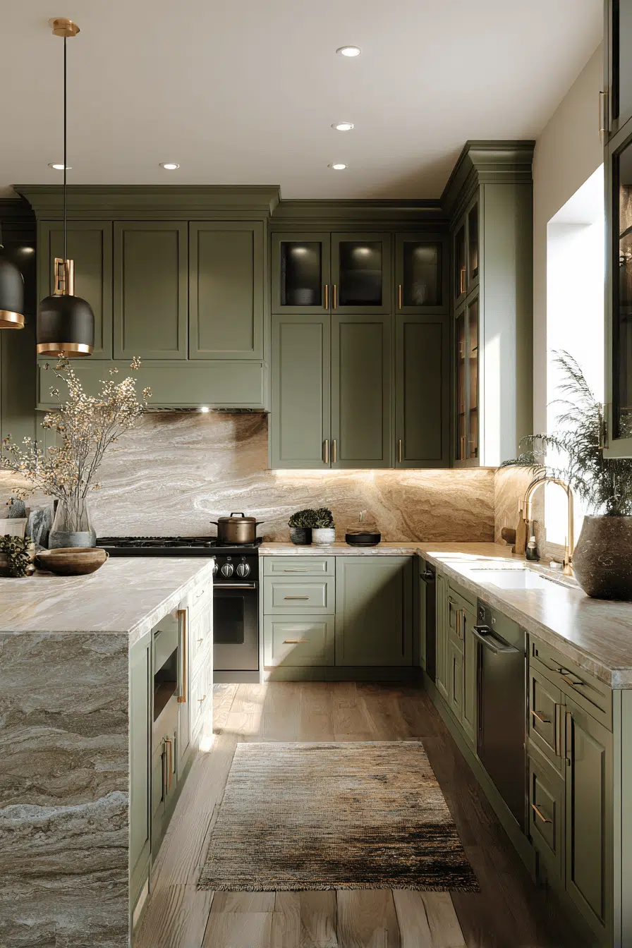 8. Sophisticated Olive Kitchen Look