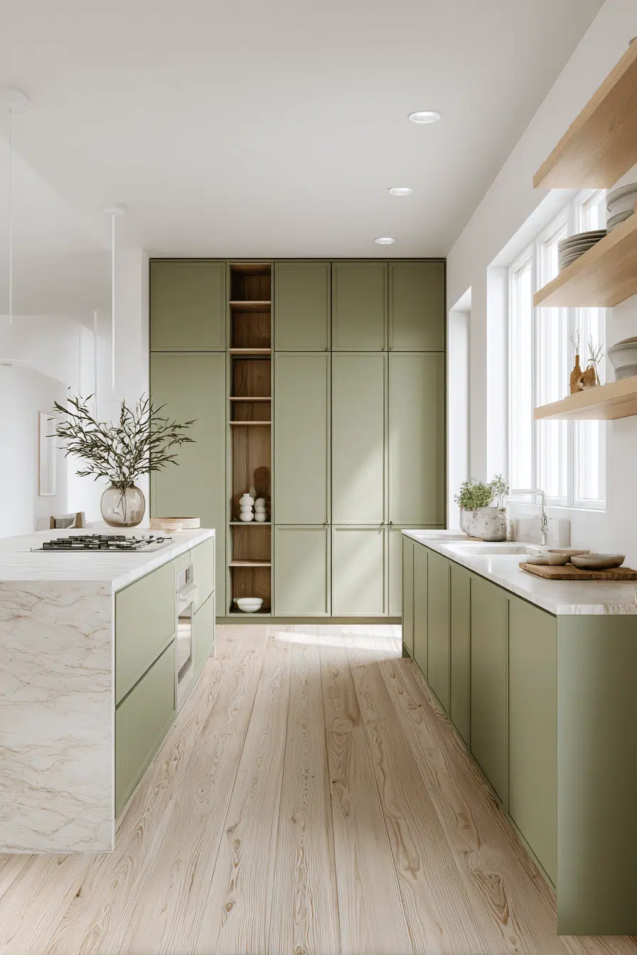 16. Airy Olive Kitchen Interior