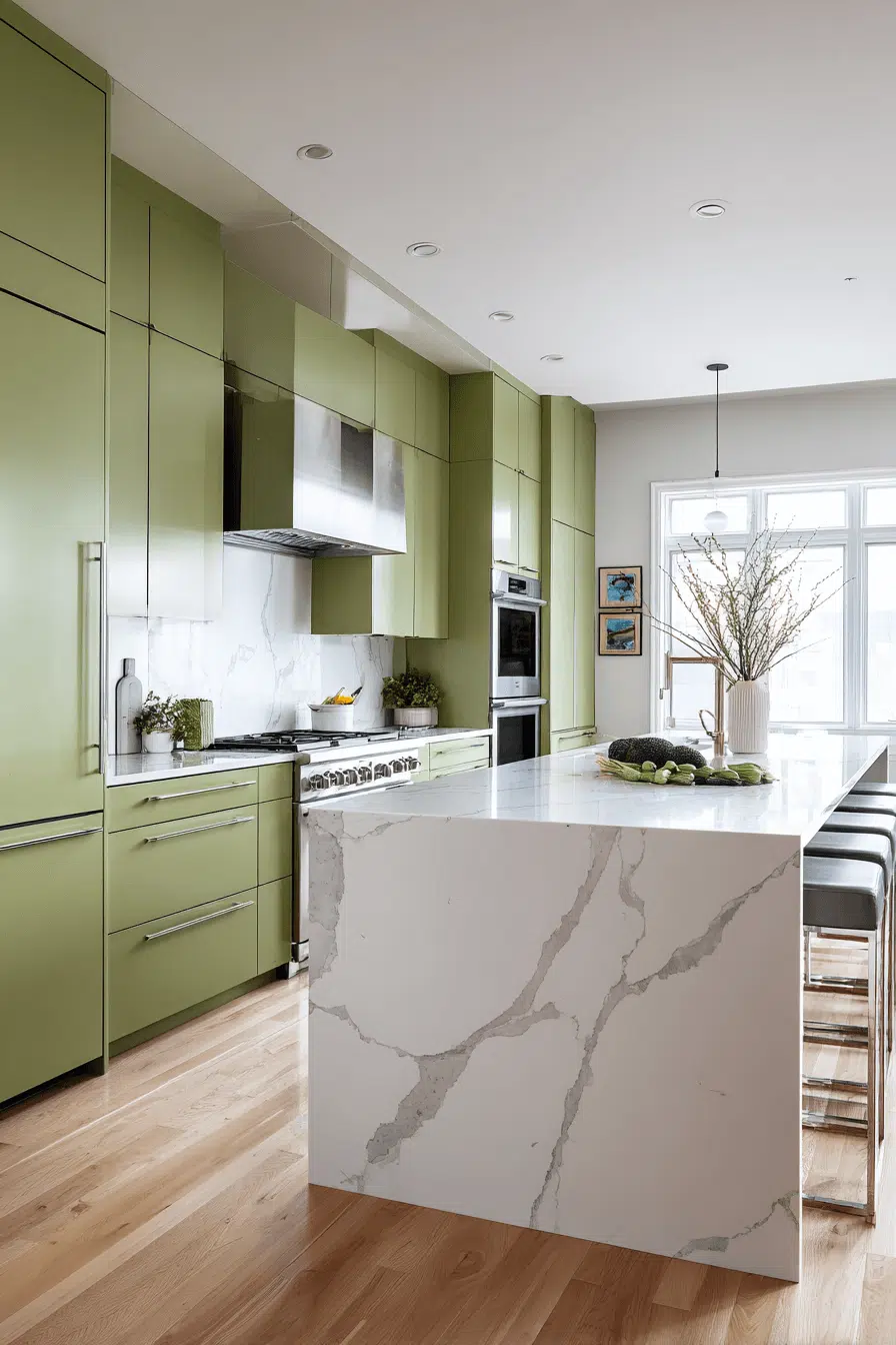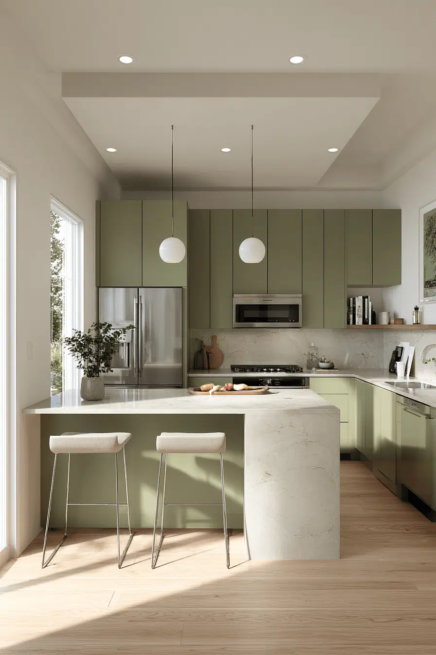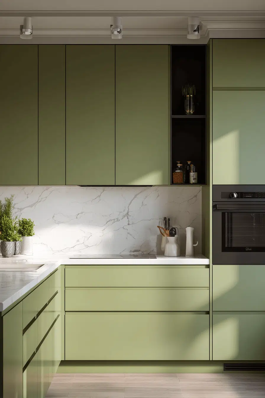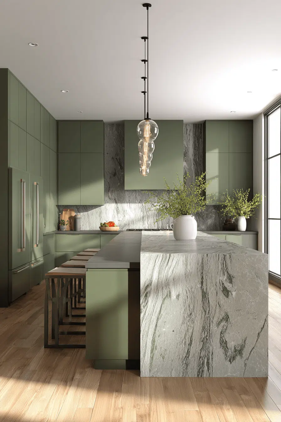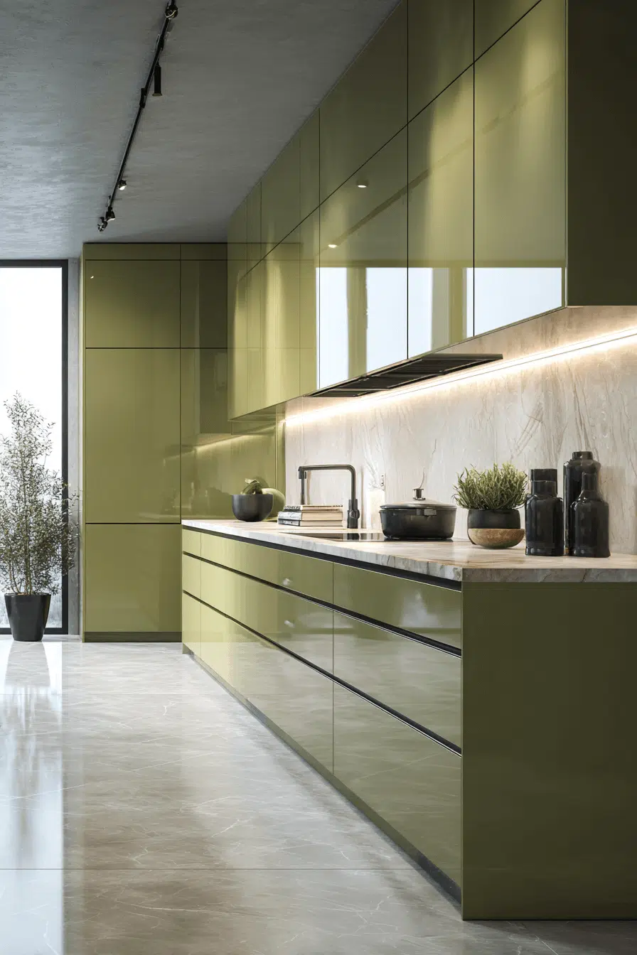 2. Sleek Olive Kitchen Design