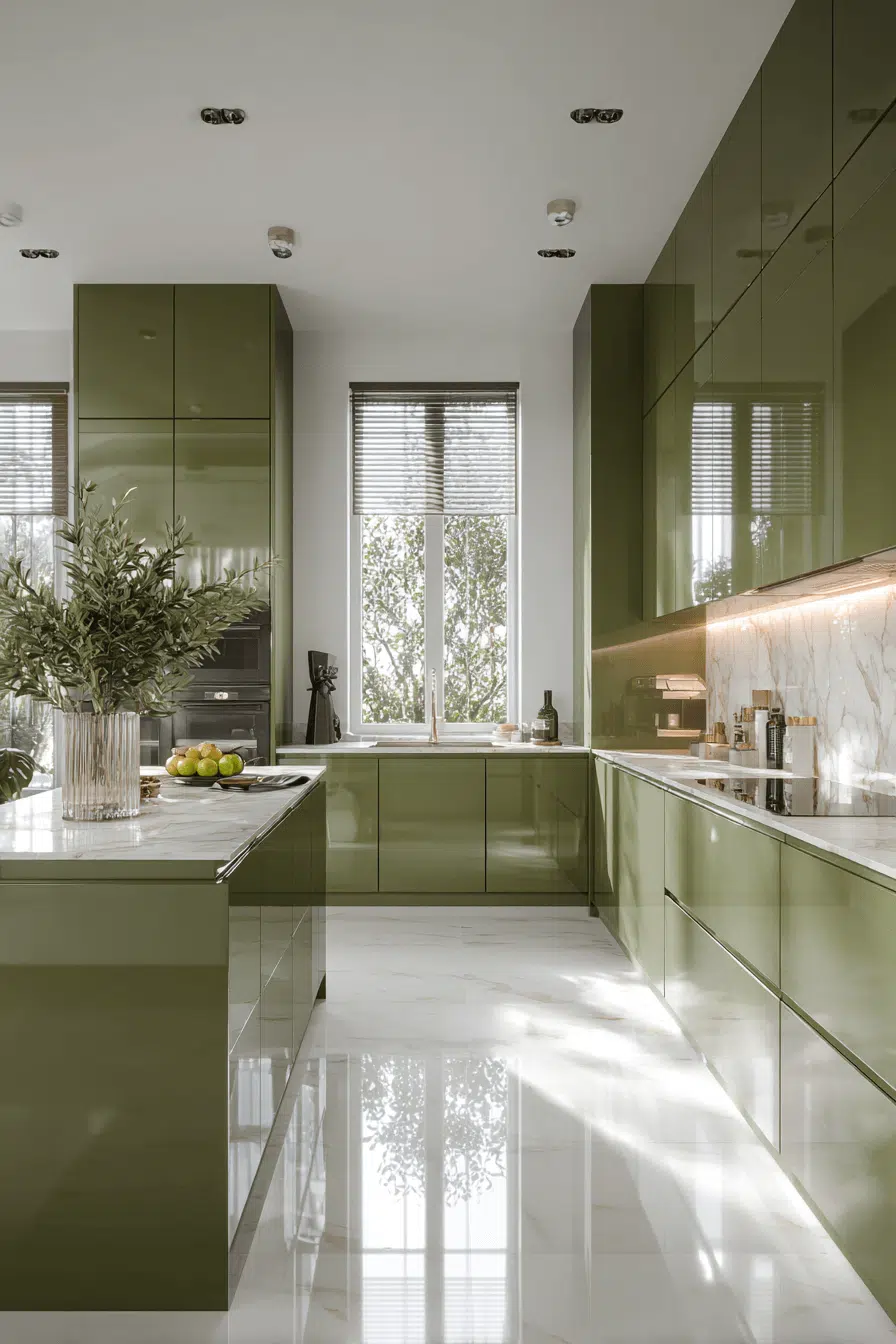 20. Polished Gloss Olive Kitchen