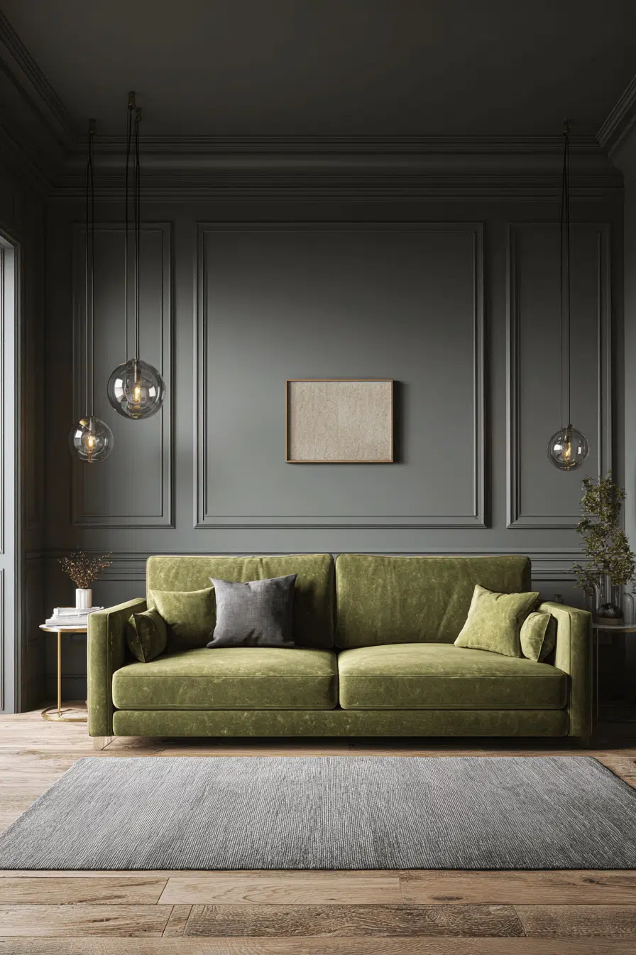 5. Olive Living Room with Bold Black Details