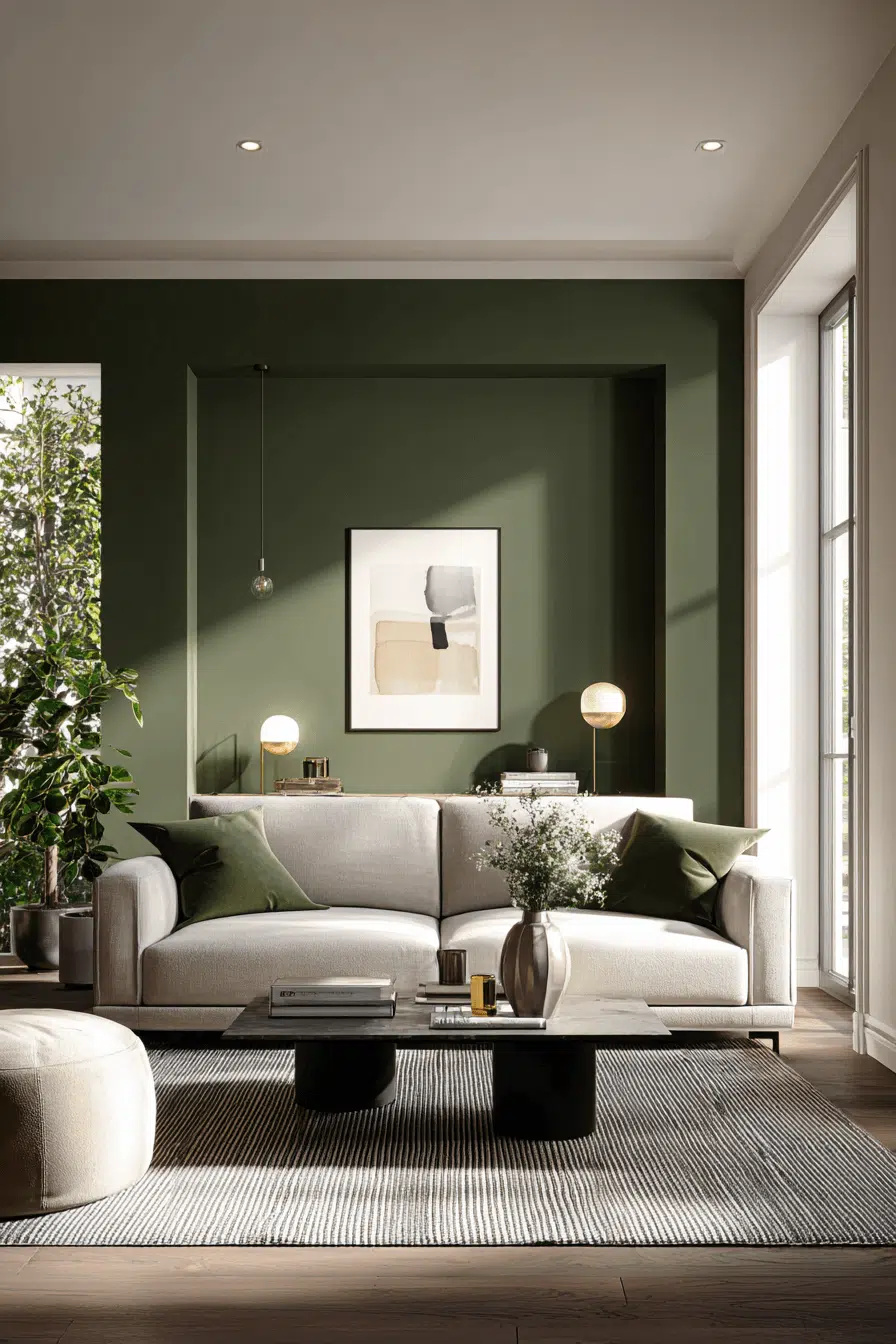 2. Feature Wall in Olive Living Room