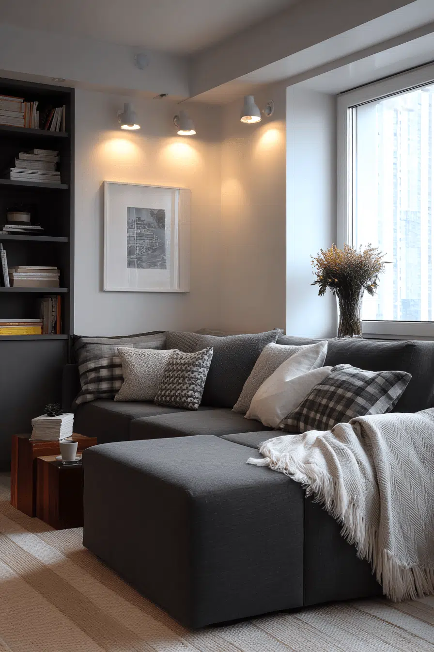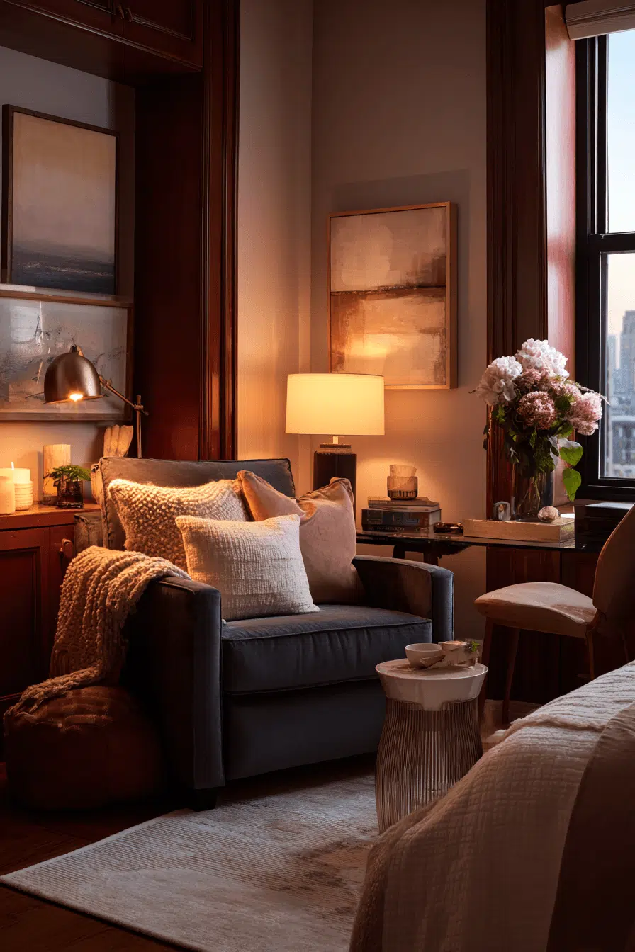 Creating a peaceful corner can bring balance to a compact apartment. This small apartment inspiration uses soft tones and minimal styling. Natural textures add warmth and grounding. Comfortable seating enhances relaxation. Gentle lighting completes the look. The space feels calm and restorative. Explore how to create a quiet retreat.